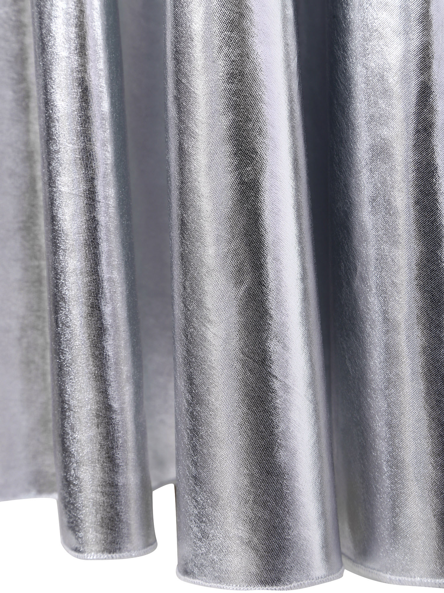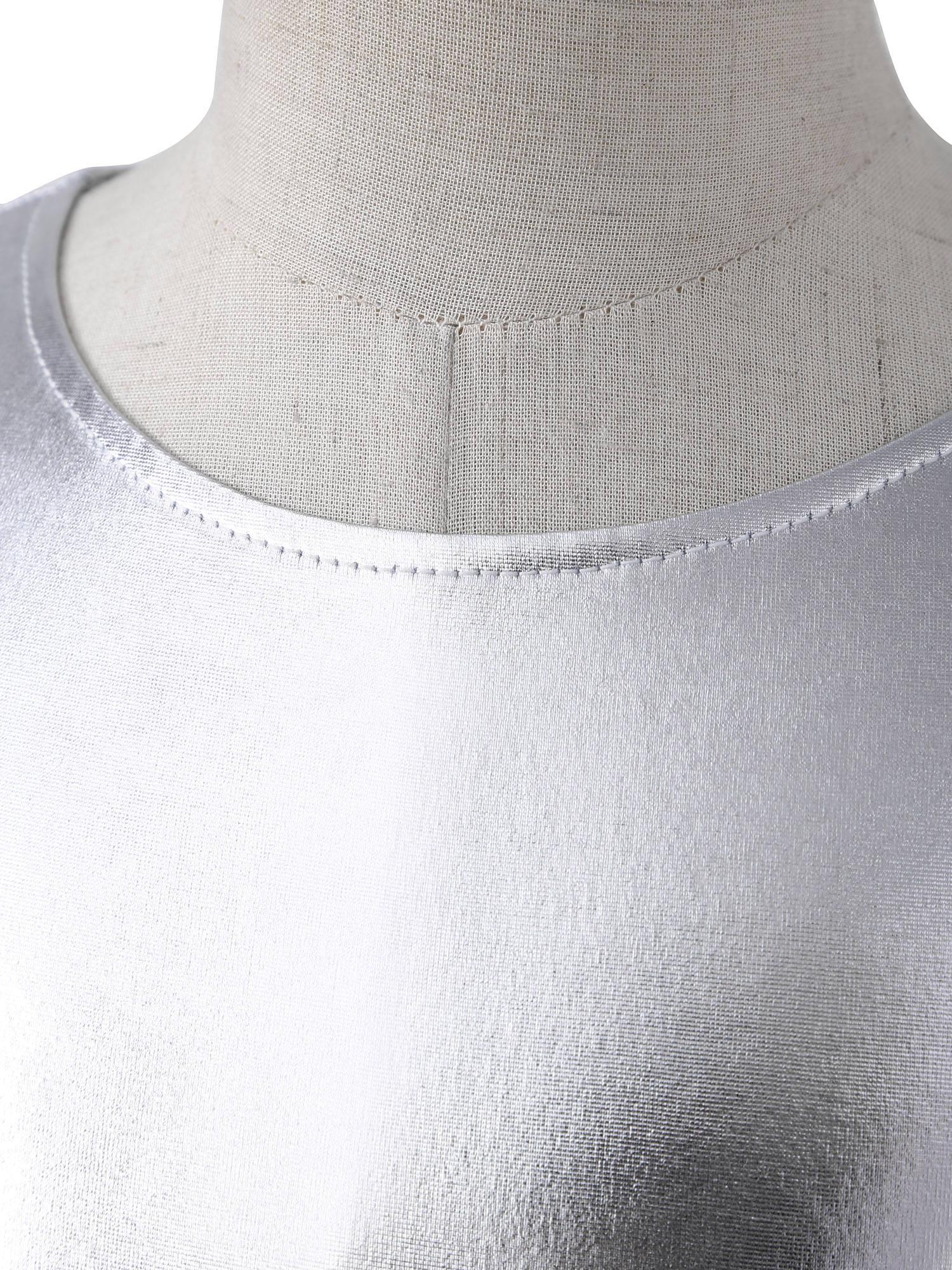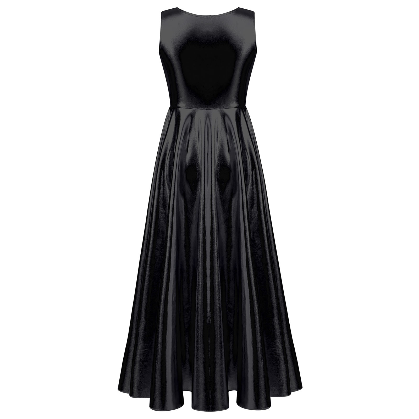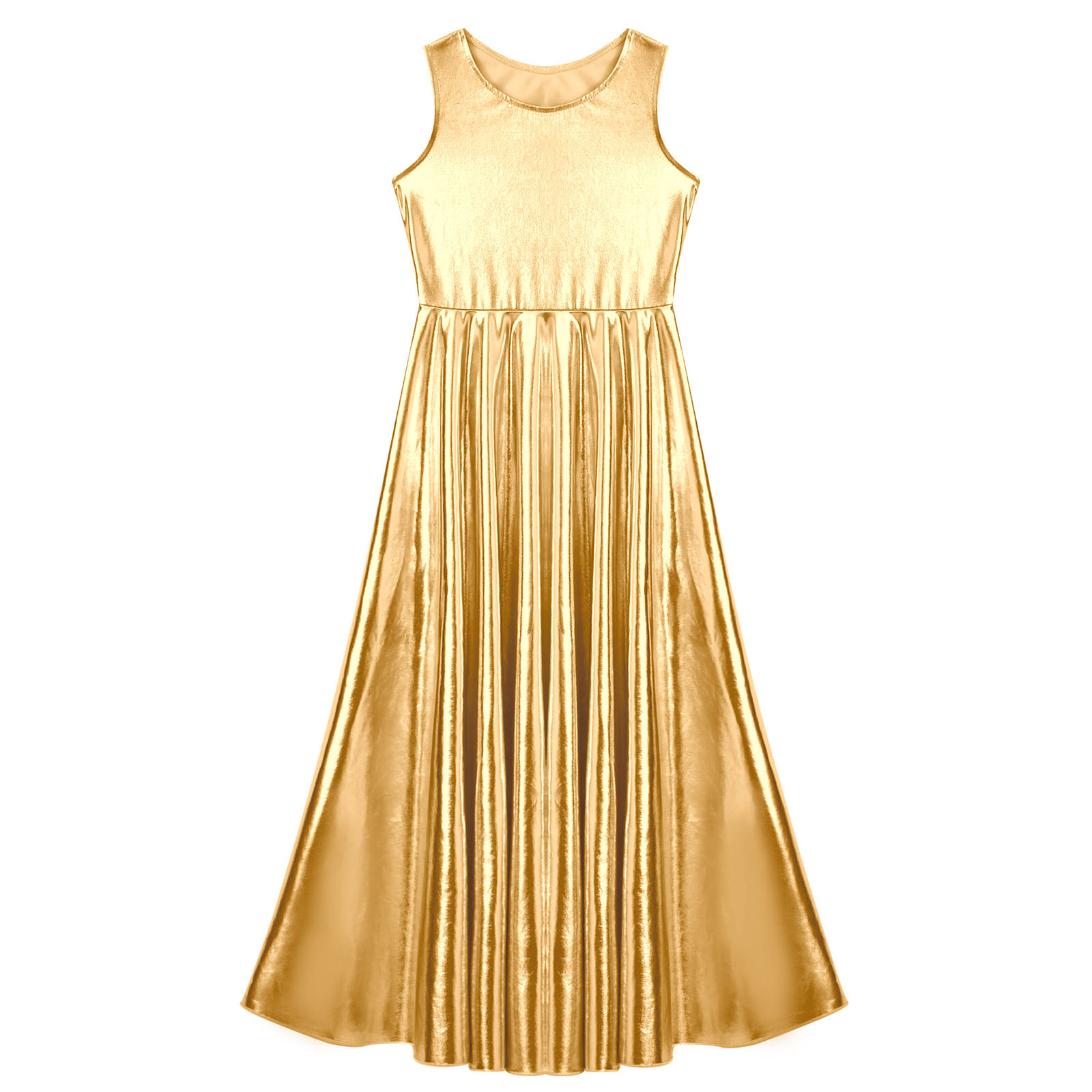 Платье с круглым вырезом и без рукавов; Блестящая бронзовая ткань; Уникальный дизайн.