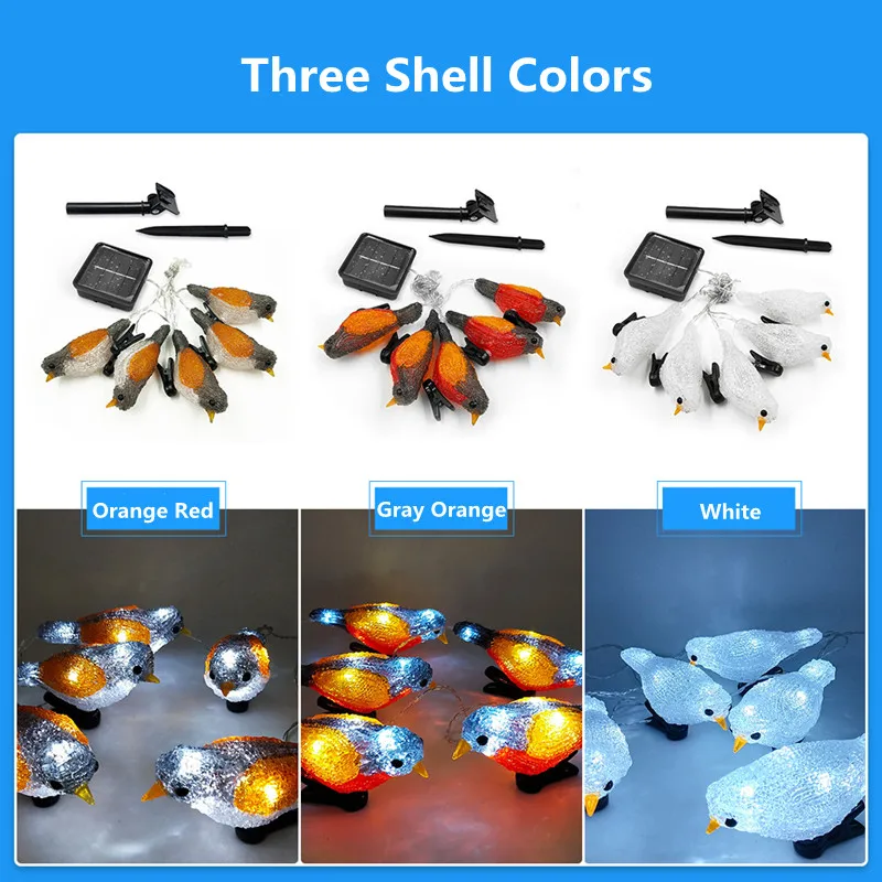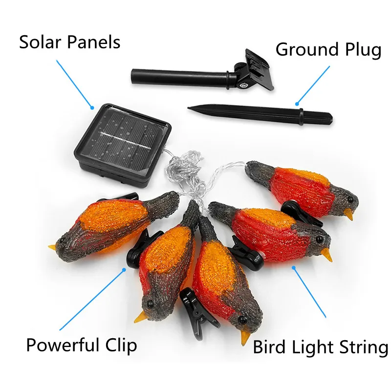 Светодиодный светильник на солнечной батарее, милый стиль птиц, уличный водонепроницаемый светильник на солнечной батарее, гирлянда для сада, двора, Рождественское украшение, солнечный светильник