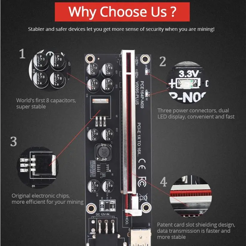 4. Адаптерная карта питается отдельно, так что источник питания видеокарты не зависит от материнской платы, тем самым уменьшая нагрузку на материнскую плату при подключении нескольких графических карт.