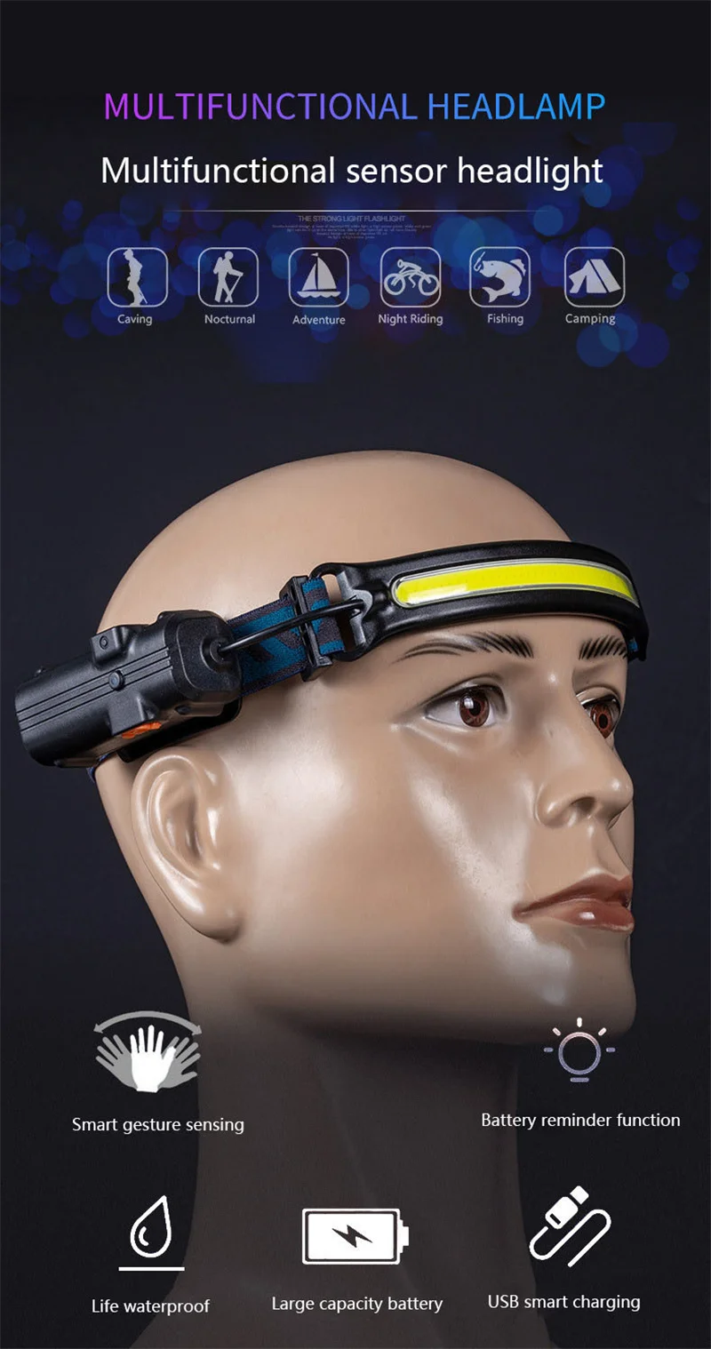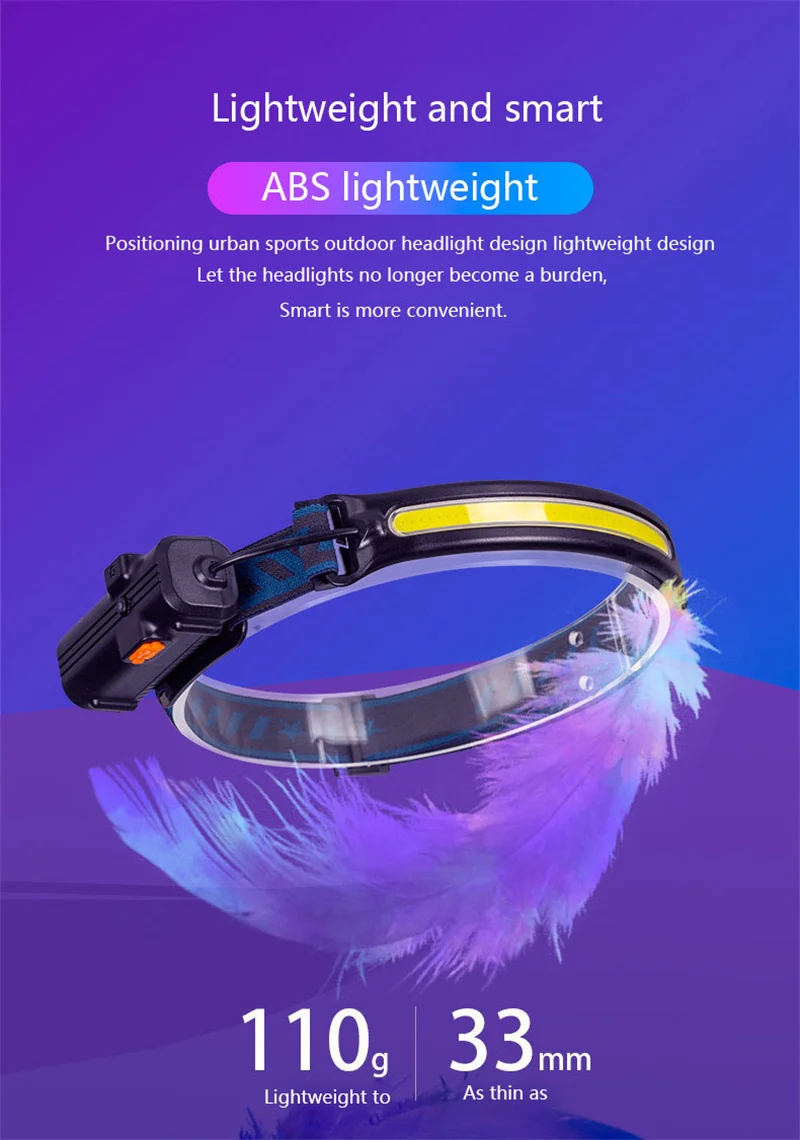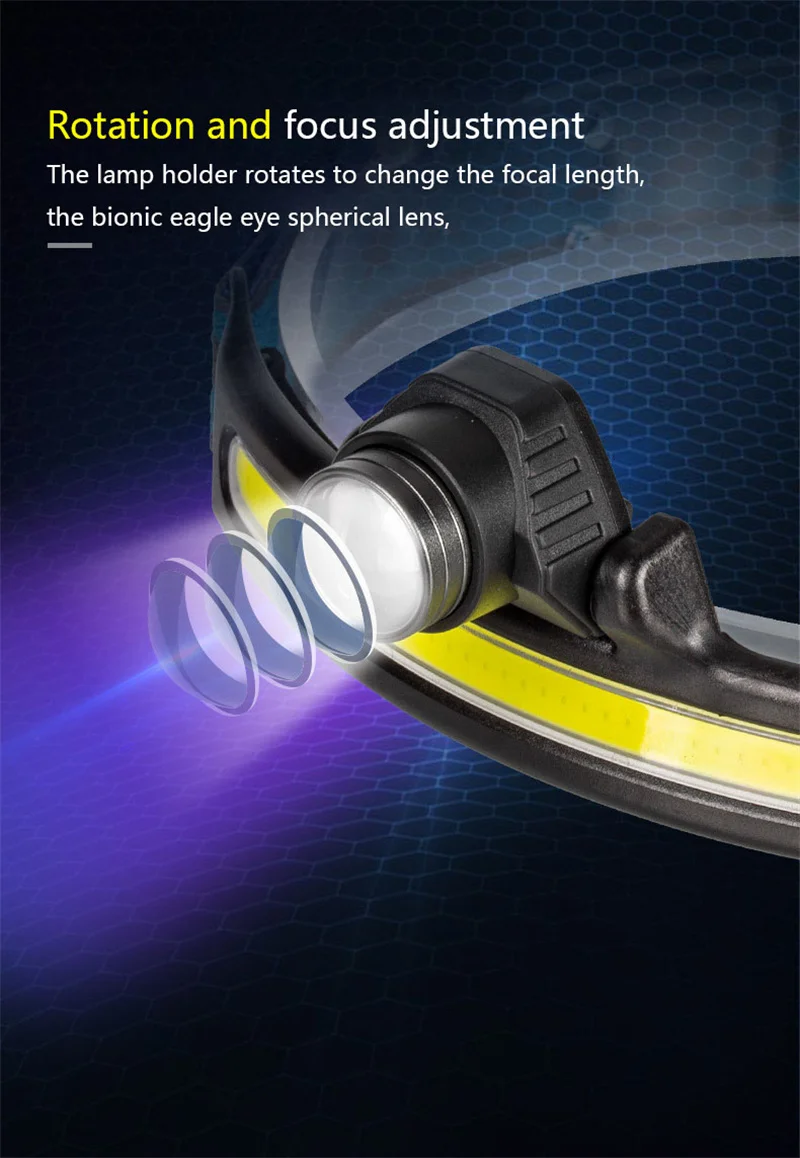 Портативный мини фонарик Фонарь COB светодиодный налобный фонарь + 1 * Встроенный аккумулятор 18650 наружная походная фара