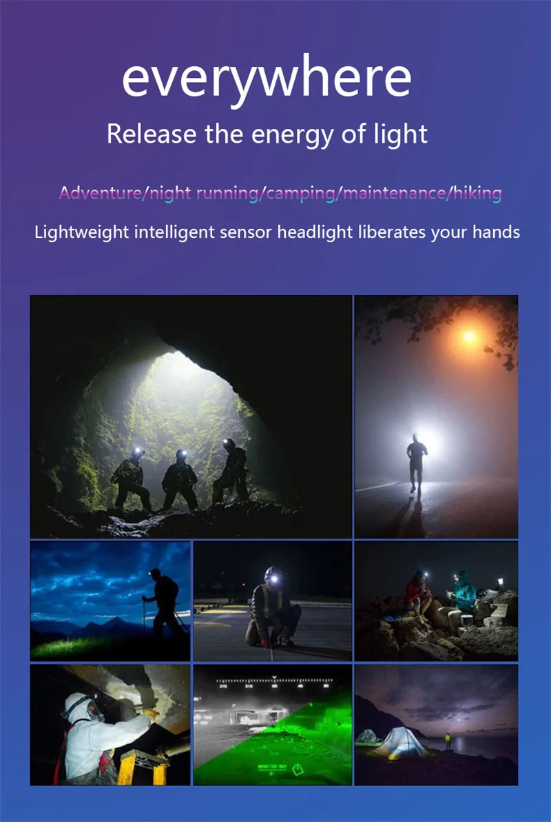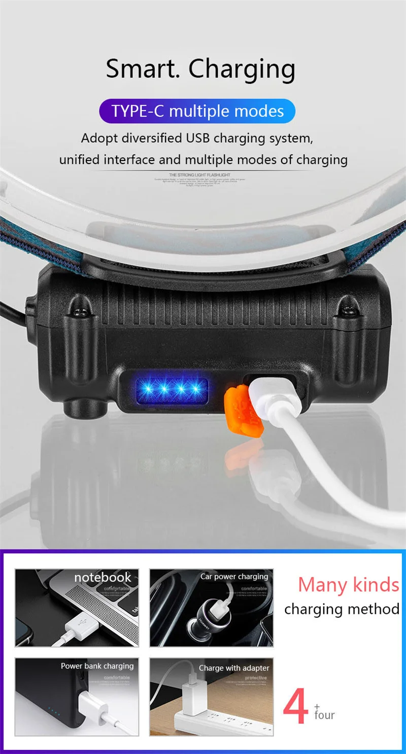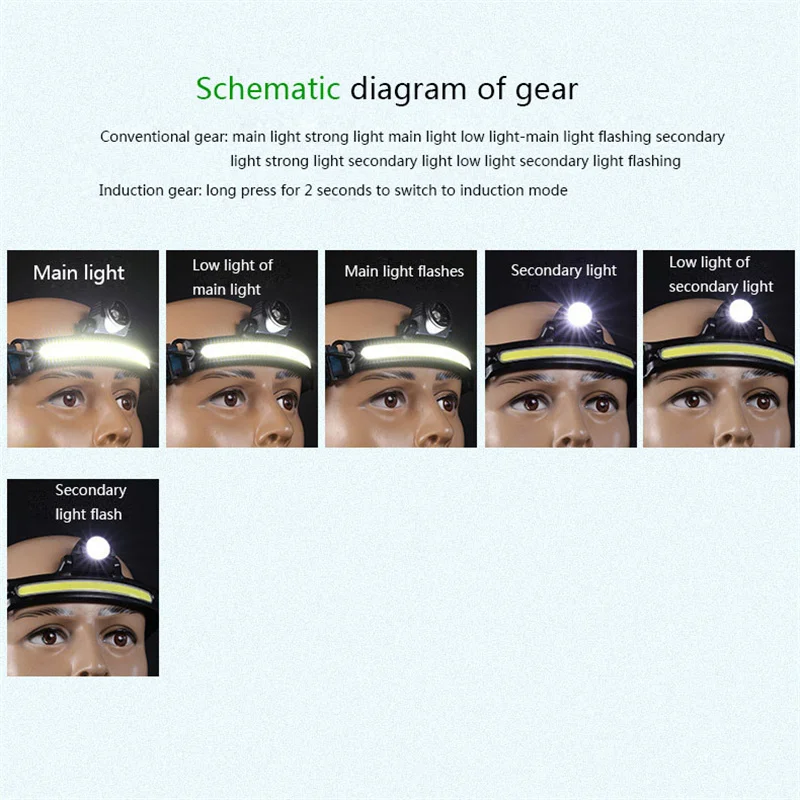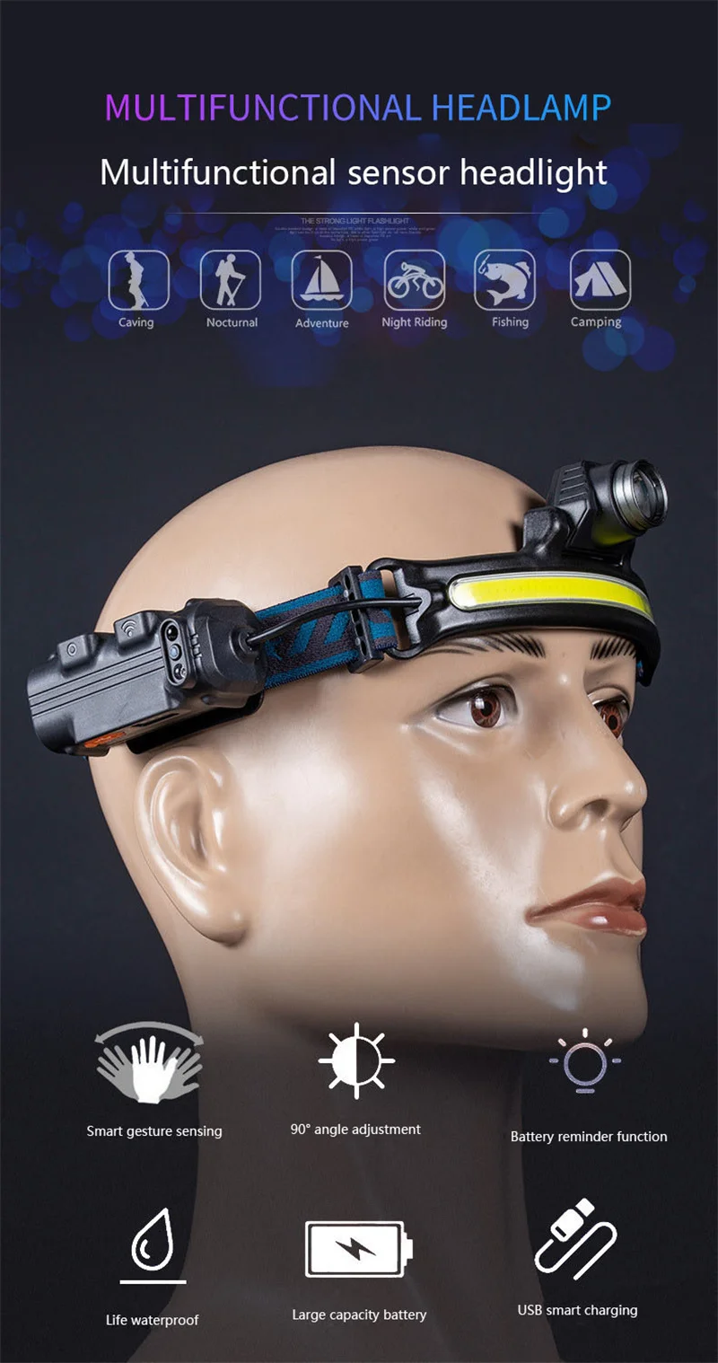 Портативный мини фонарик Фонарь COB светодиодный налобный фонарь + 1 * Встроенный аккумулятор 18650 наружная походная фара