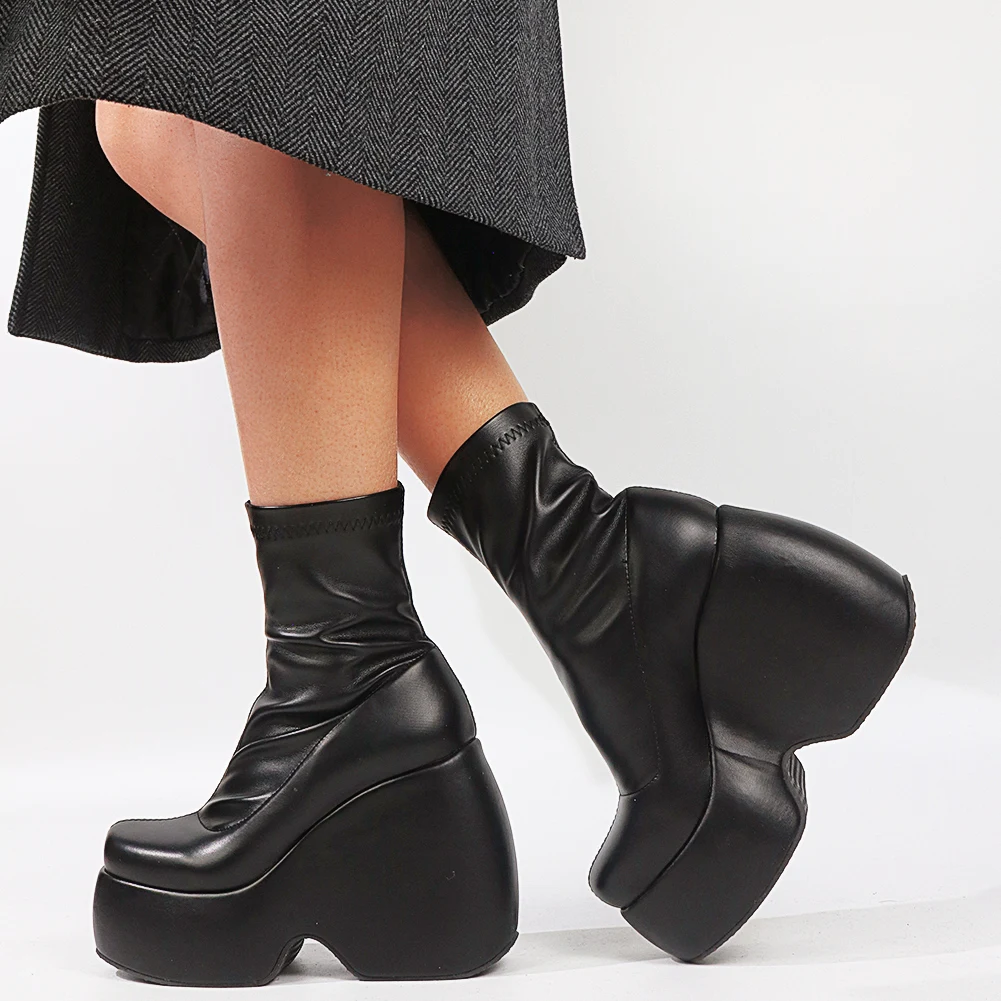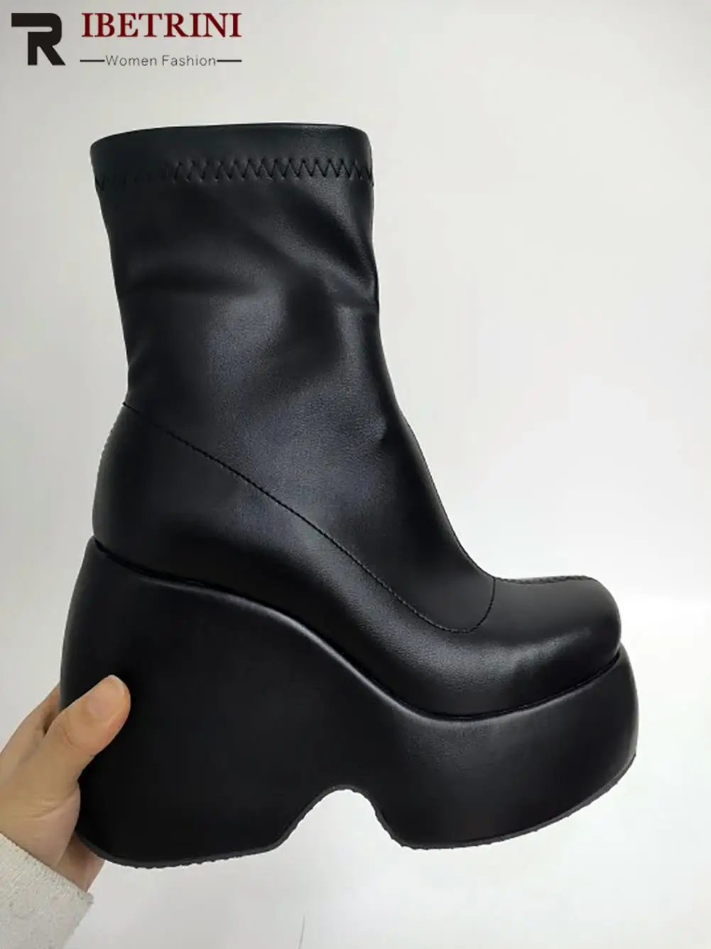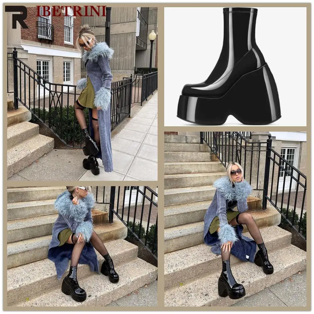 2022 Новое поступление; Модные роскошные Ботильоны на танкетке и толстом каблуке; Женская стильная Брендовая обувь высокого качества