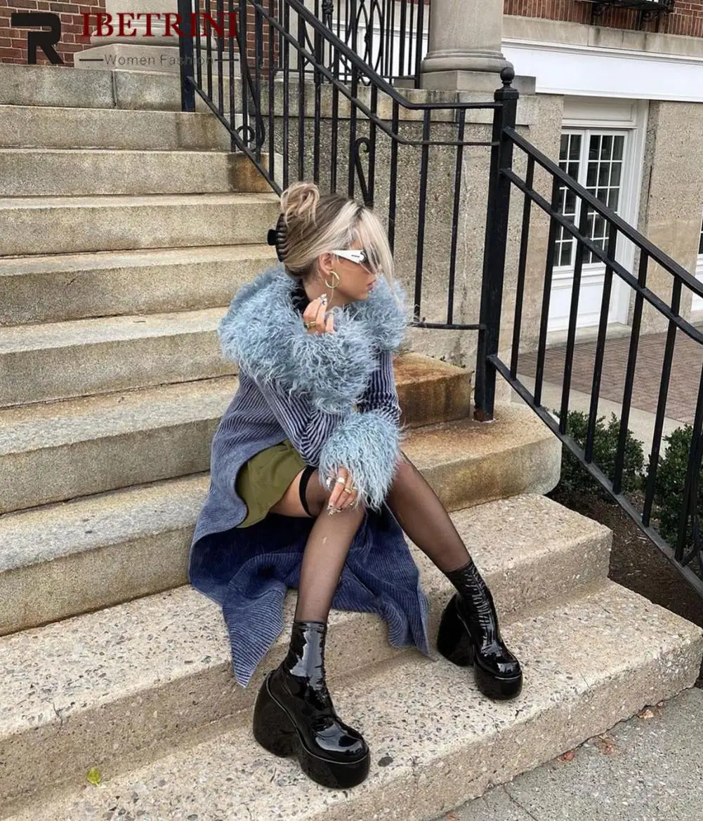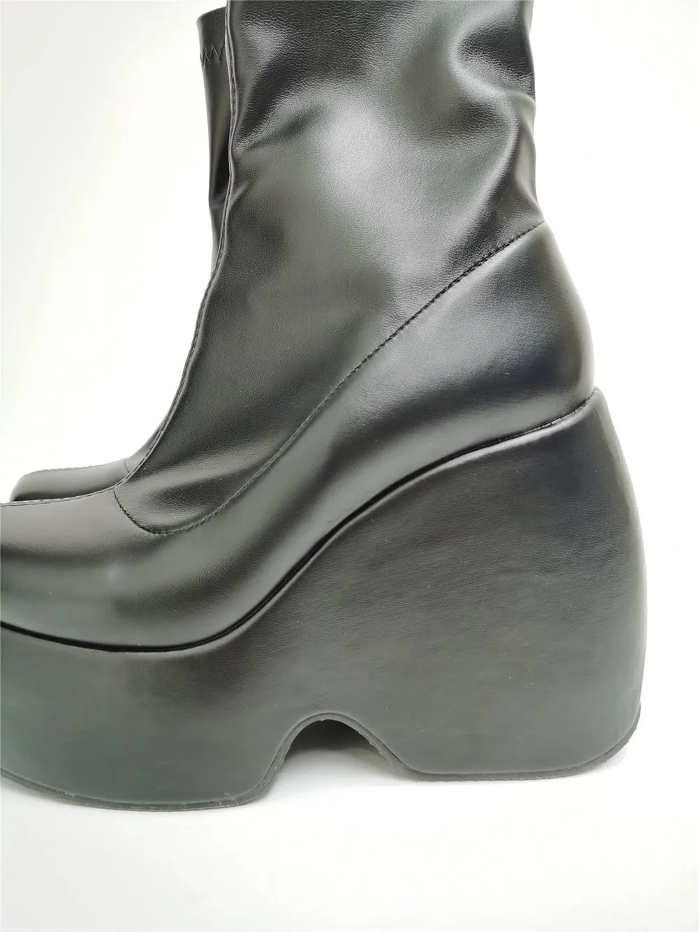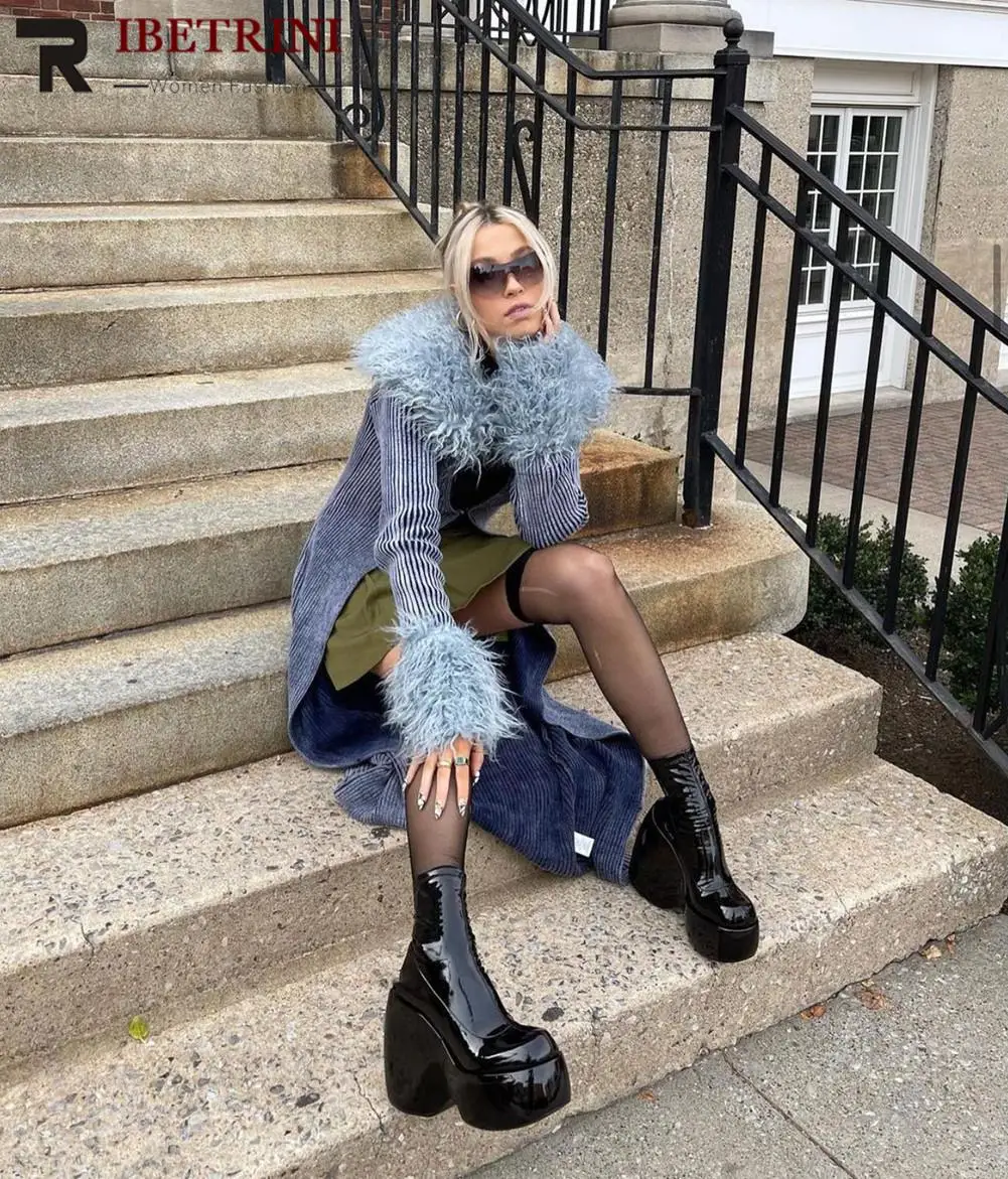 2022 Новое поступление; Модные роскошные Ботильоны на танкетке и толстом каблуке; Женская стильная Брендовая обувь высокого качества