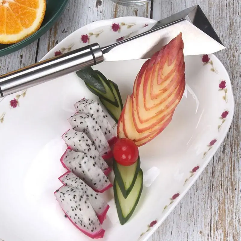Треугольный нож с резьбой по фруктам, бытовой нож из нержавеющей стали для яблок, нож для шеф-повара, фруктовое блюдо, артефакт, форма для резьбы по пище