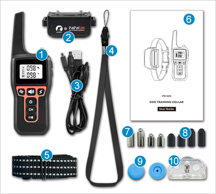 1. Function:Beep, Vibration, Static Shock.2. There is a keylock / power button on the remote, It can effectively prevent false trigger and is safe for children.3. Scope of application:For small,medium or large dogs.4. Rechargeable and IPX7 waterproof,1000 meters/3200 ft remote.5. Vibration and static shock are 100 levels adjustable.6. Super power saving, when charging 2 hours, could work 60 days.7. The device has power-saving design and automatically self-protective mode.8. Adjustable black reflective nylon collarThe Component Of Product:1. 1 × Remote Transmitter2. 1 × Receiver 3. 1 × USB Charging Cable 4. 1 × Lanyard5. 1 × Black Refletive Nylon Collar6. 1 × User Manual7. 4 × Metal Contact Points8. 4 × Silicone Contact Points9. 2 × Anti-Shock Pads10. 1 × Test LampRemark: The silicone contact point can conduct electricity and protect your dog's skin. Anti-shock pads could prevent skin abrasion and insulated from electricity.Хочу поблагодарить Вас за то, что вы дарите радость людям. Мой сынулька - фанат динозавров. У нас, кстати, уже целая... Читать отзыв полностью...
