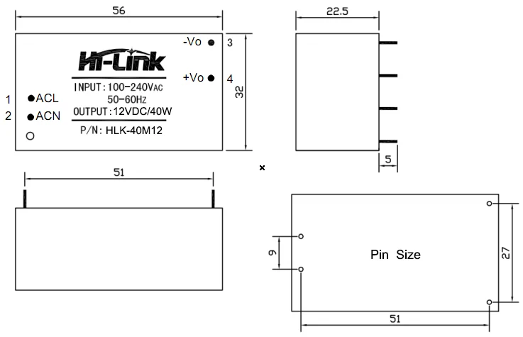 5pcs HLK-40M12 40W 12V AC DC Power Supply Module CE RoHs