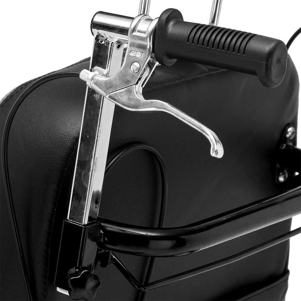 The manufacturer took care not only of the comfort of the sitting, but also of who cares about it. The stroller has comfortable corrugated handles and is equipped with Presser type brakes on both sides. They can use both the patient himself and the accompanying-under the handles are brake levers.
