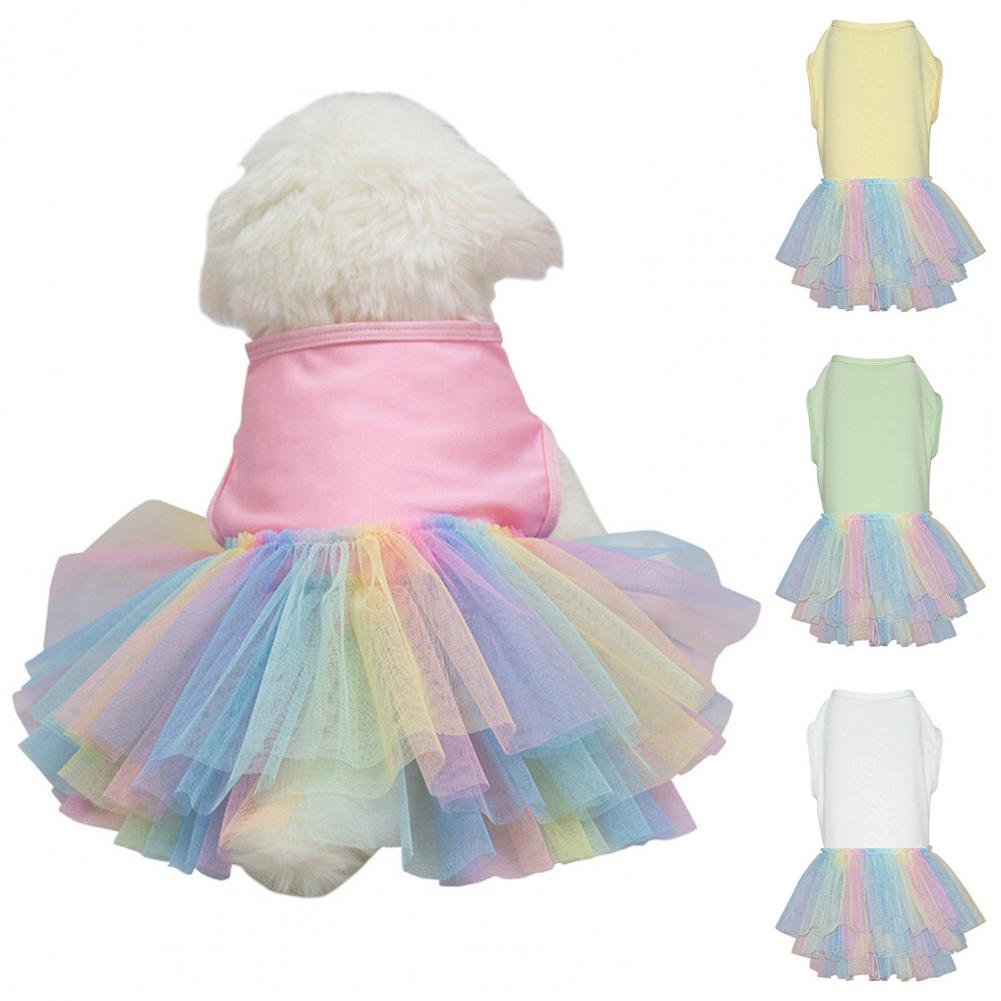 Юбка для питомца, разноцветное платье из молочного волокна, платье принцессы из тюля с собачками на лето