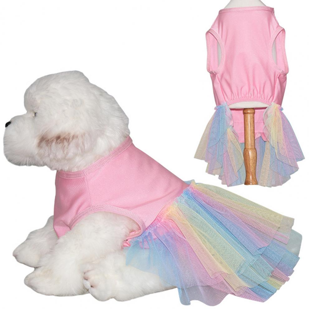 С характером однотонного жилета и разноцветной фатиновой юбки платье для питомца сделает вашего питомца более милым, модным и очаровательным.