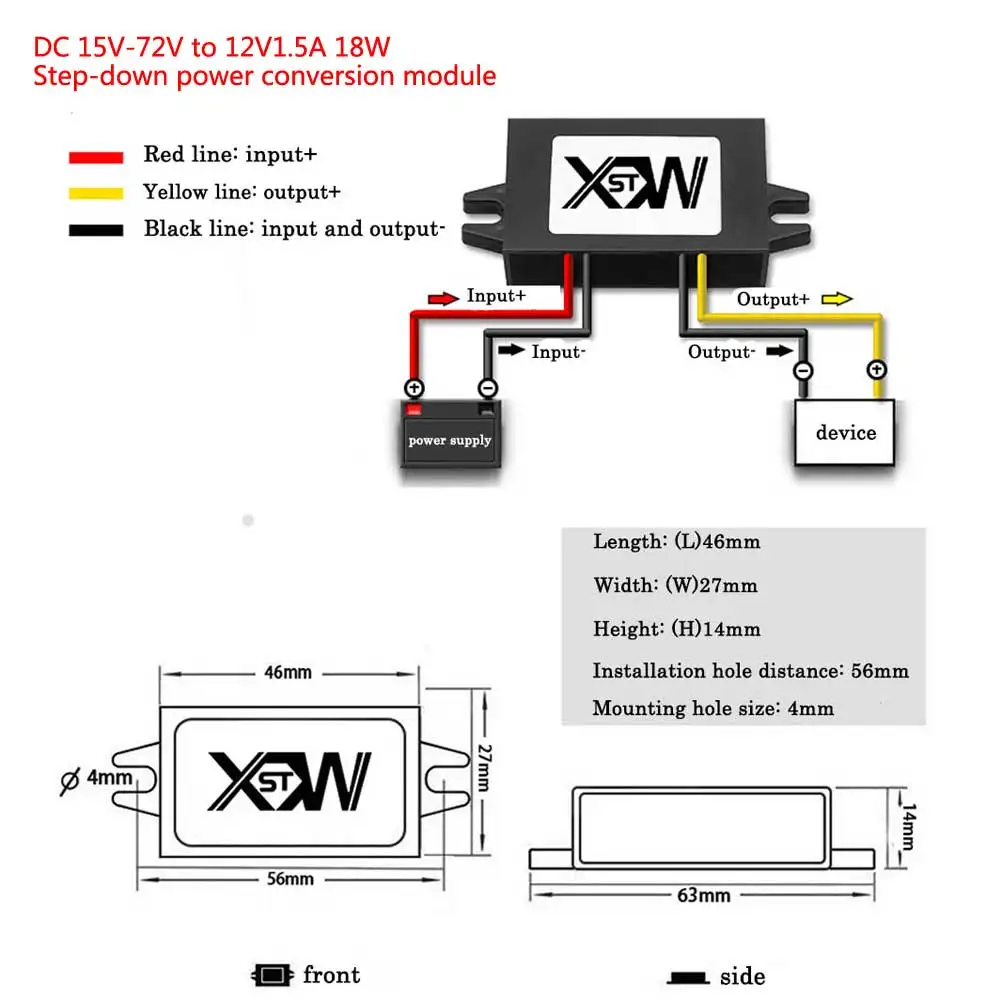 DC 15V-72V до 12V1.5A 12W DC понижающий модуль преобразования мощности