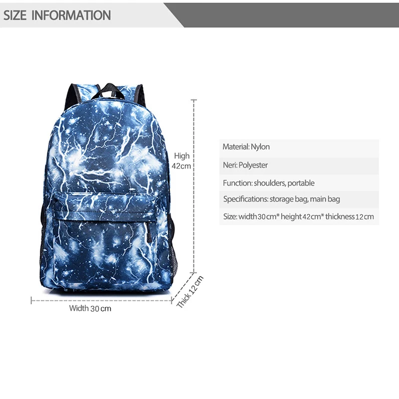 Размеры: Рюкзака: 30 см * 42 см * 12 см (1 см = 0,39 дюйма)