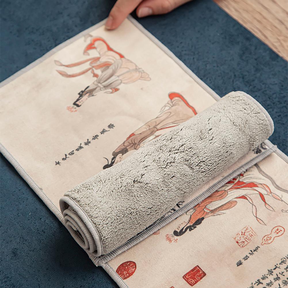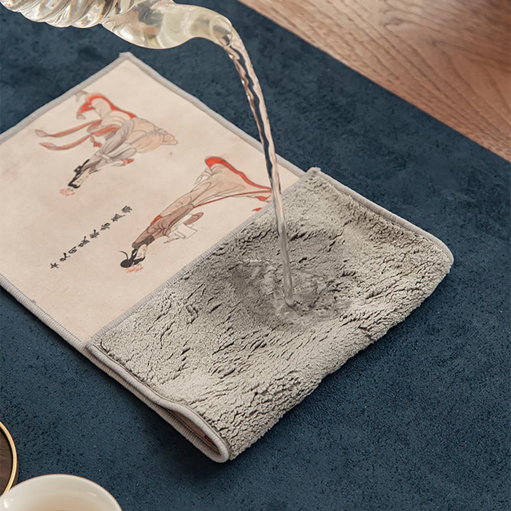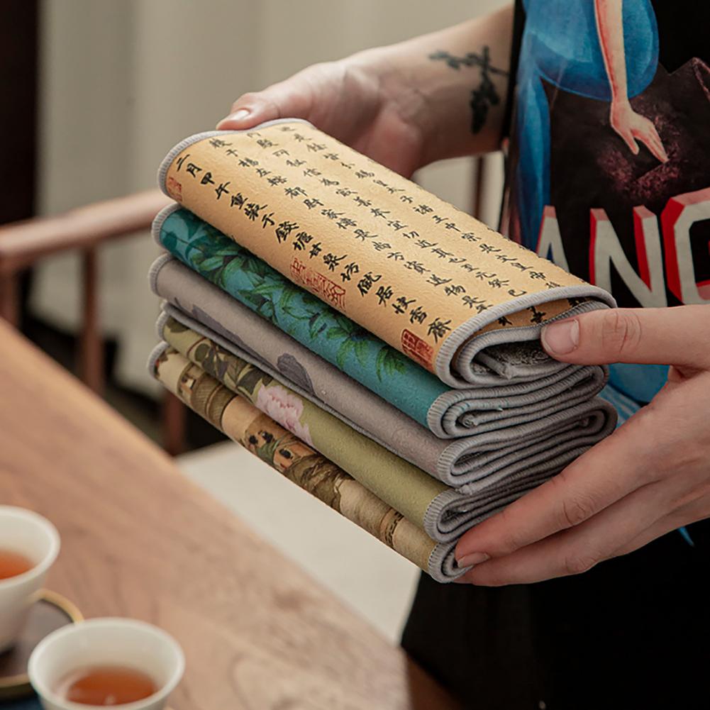 Tea Towel Super Absorbent Chinese Style Pattern Painted High-class Fabric Cleaning Rag for Kitchen