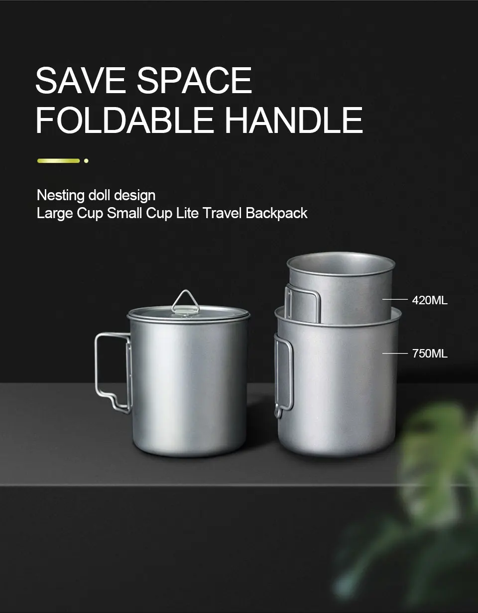 Походная посуда, чашка, легкая чистая титановая чашка для воды с складной ручкой, чашка для пикника и кемпинга, посуда, 350-750 мл