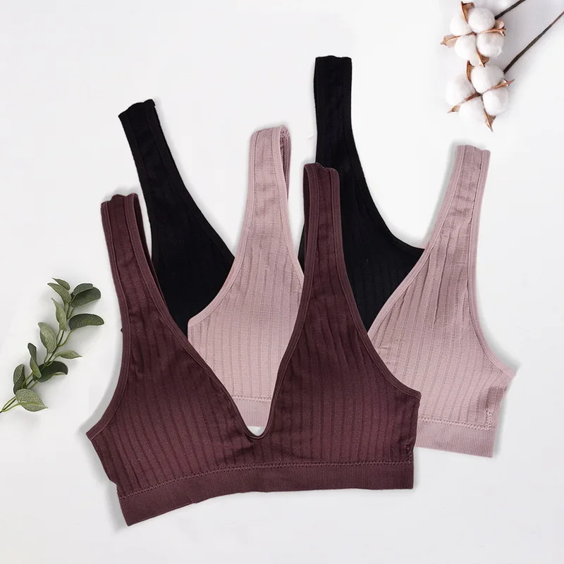 Топ женский бесшовный спортивный бюстгальтер с глубоким v-образным вырезом, сексуальный укороченный топ, женское нижнее белье с открытой спиной, бюстгальтер без косточек, женский бюстгальтер.