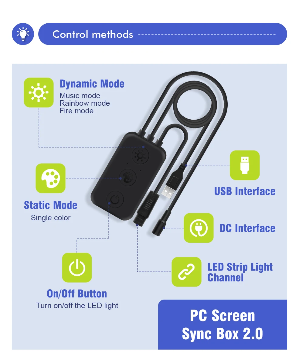 Динамический светильник dream color strip может отображать цвет монитора ПК в режиме реального времени, запечатлевать цвет на экране и наносить его на светильник, это потрясающая идея дизайна игровой комнаты, простой способ улучшить ваш игровой опыт, увеличить беспокойство в погоне, усилить все эффекты действий.