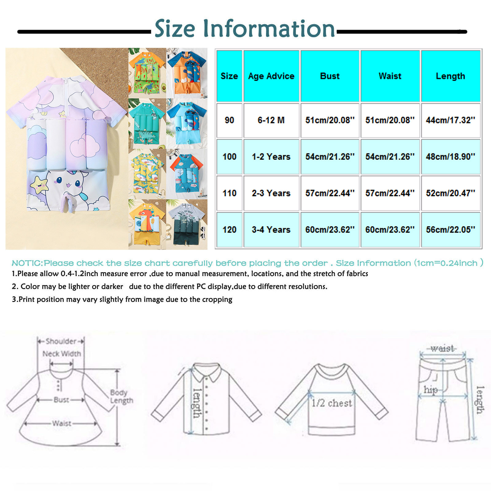 1. Мокрый костюм для мальчиков и девочек, плавучесть, пляжный купальный костюм, доступно в 6-12 месяцев, 1-2 года, От 2 до 3 лет, От 3 до 4 лет для малышей. Этот съемный плавучий костюм для плавания, возраст только для справки, пожалуйста, обратитесь к измерениям. Примечание: купальный костюм для малышей-это способ научиться плавать, а не спасательное устройство, и наблюдение за взрослыми требуется во все времена.