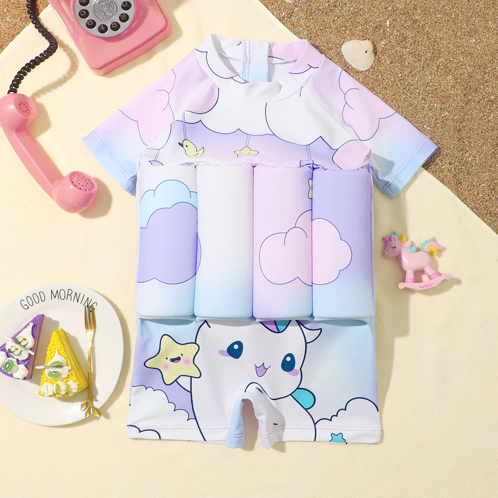 1. Купальник цвета радуги с милым принтом для маленьких мальчиков и девочек, Детский костюм с жилеткой для плавания, изготовлен из хлопка и эластана, удобный и быстросохнущий. Храните в безопасности и дайте малышу быстро научиться плавать и наслаждаться водными видами спорта.