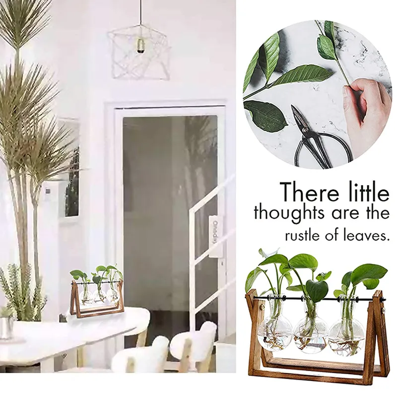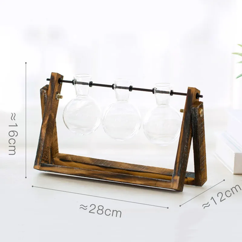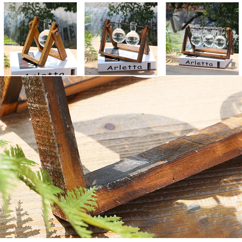 Perfect идеальное сочетание натурального дерева и прозрачного стекла-рамка изготовлена из натурального дерева, пестрая поверхность; 3 лампы террариумов изготовлены из высокоборного кремниевого термостойкого стекла. (Не легко сломать). Отлично подходит для цветочной композиции, украшения дома, а также для различных подарочных идей.