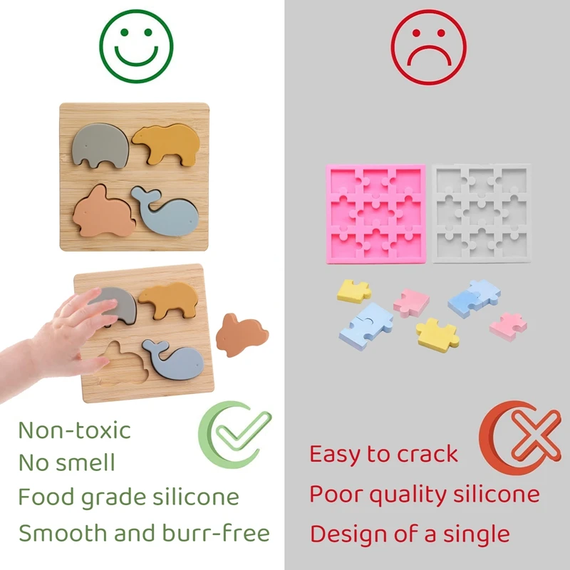 Детские деревянные головоломки животные формы силиконовые прорезыватель BPA бесплатно Монтессори развитие интеллекта игры Безопасные игрушки для малышей Подарки