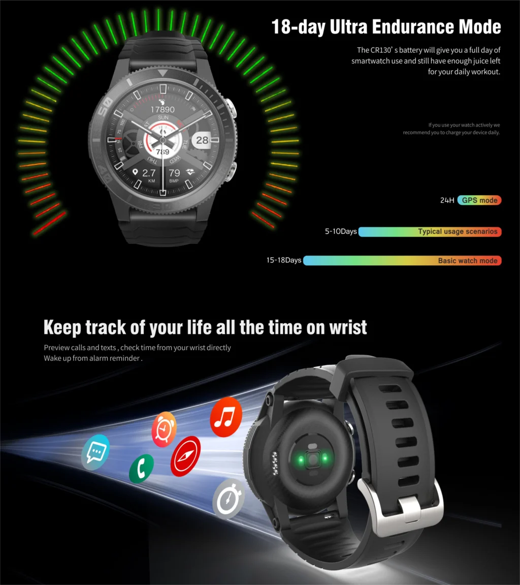 100% Оригинальные спортивные Смарт-часы CR130 GPS 1,32 AMOLED дисплей пульсометр SpO2 VO2 максимальное напряжение 25 дней батарея водонепроницаемость 50 м умные часы