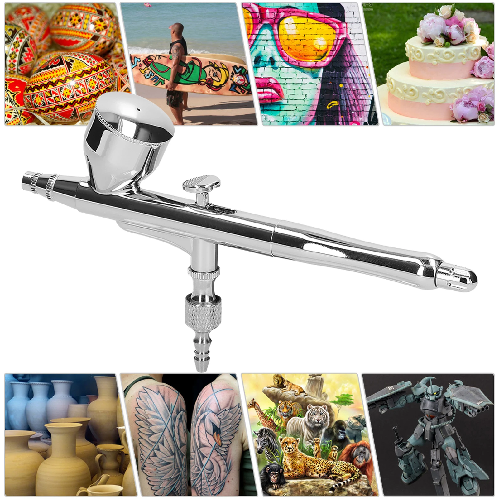 Этот профессиональный набор Аэрограф широко используется в производстве моделей, украшении тортов, татуировках, Нейл-Арте и т. д. Идеально подходит для художественных работ, коммерческого искусства, боди-арта, дизайнерской живописи, модельной живописи, хобби и ремесел, моделей и изобразительного искусства, таких как рисование автомобиля, настенная живопись.
