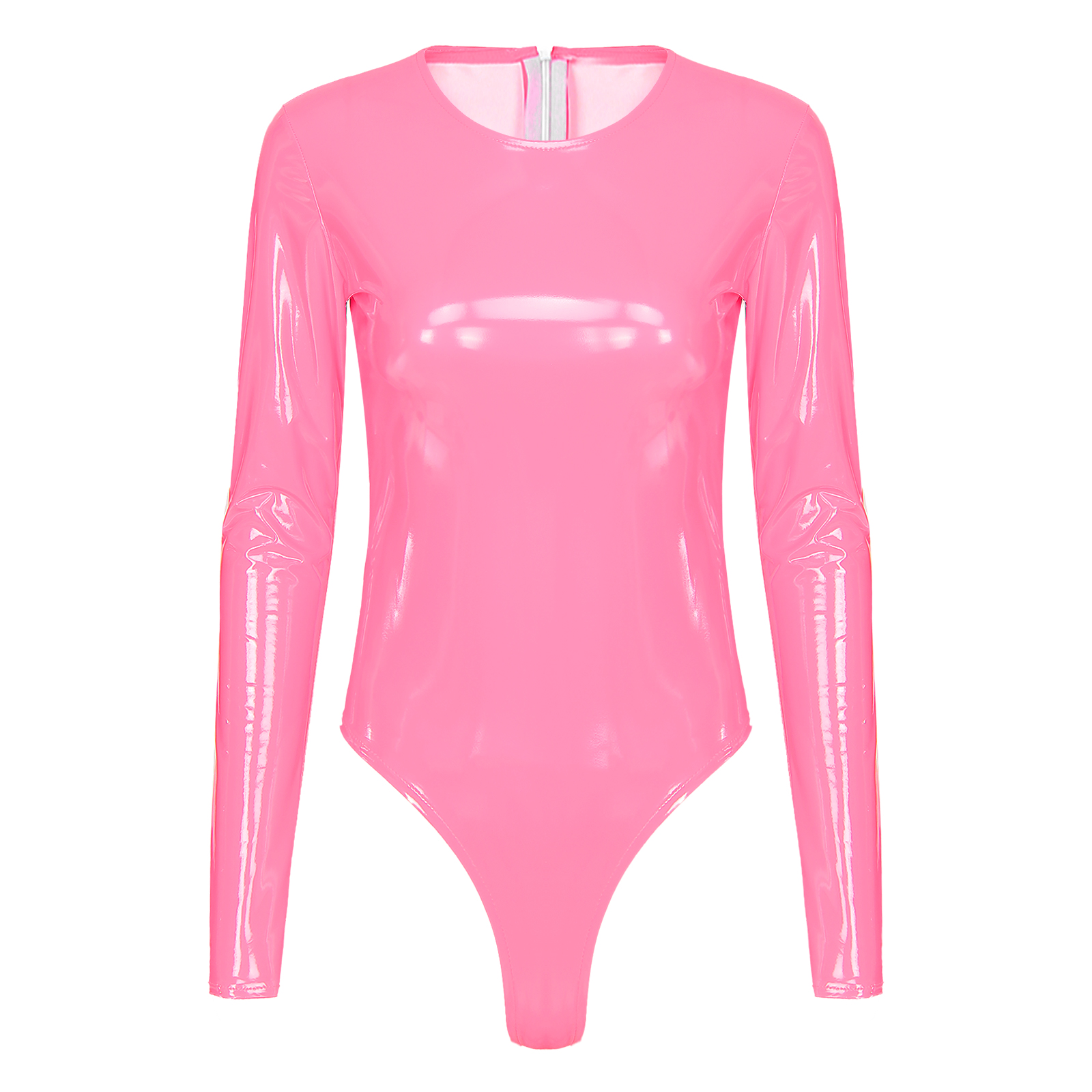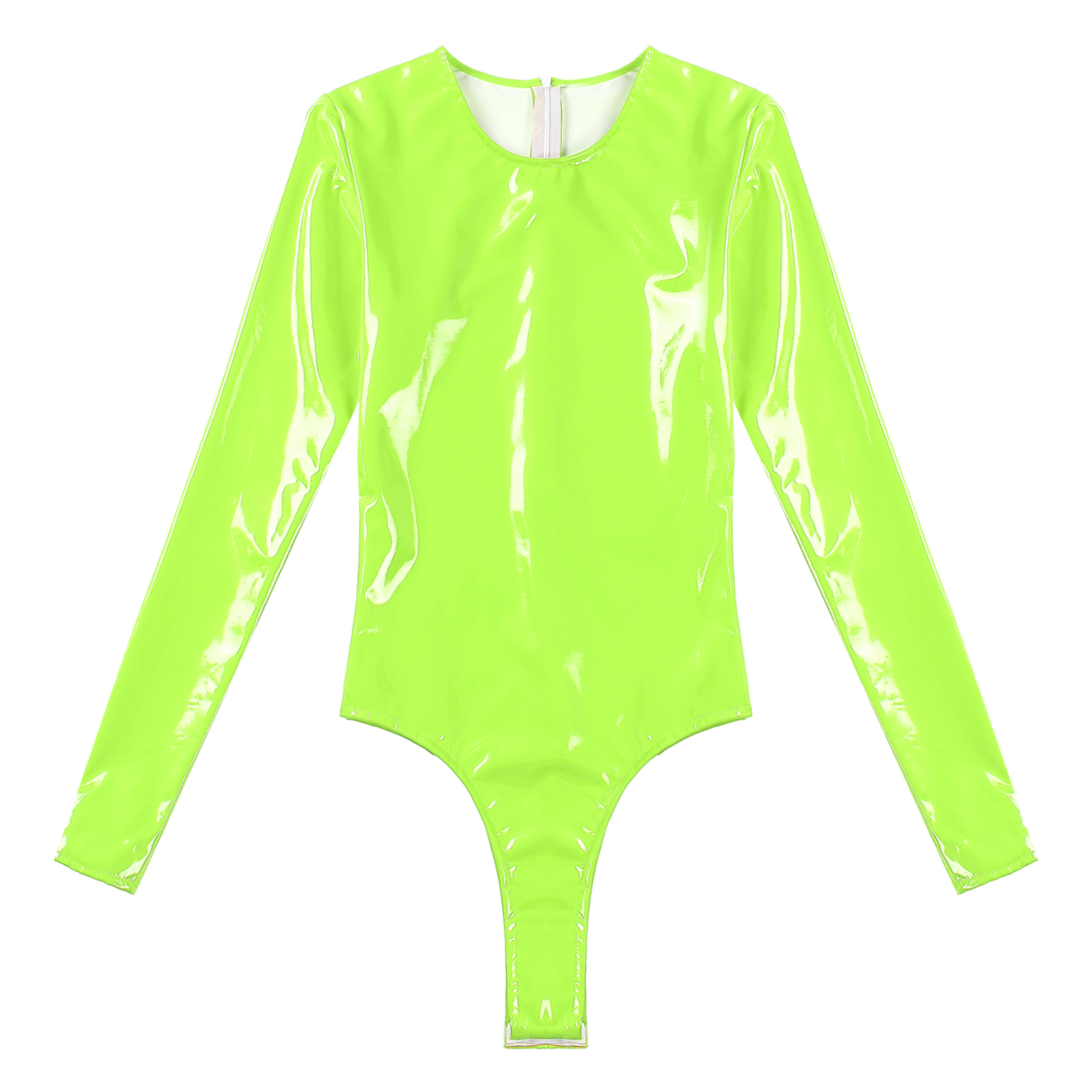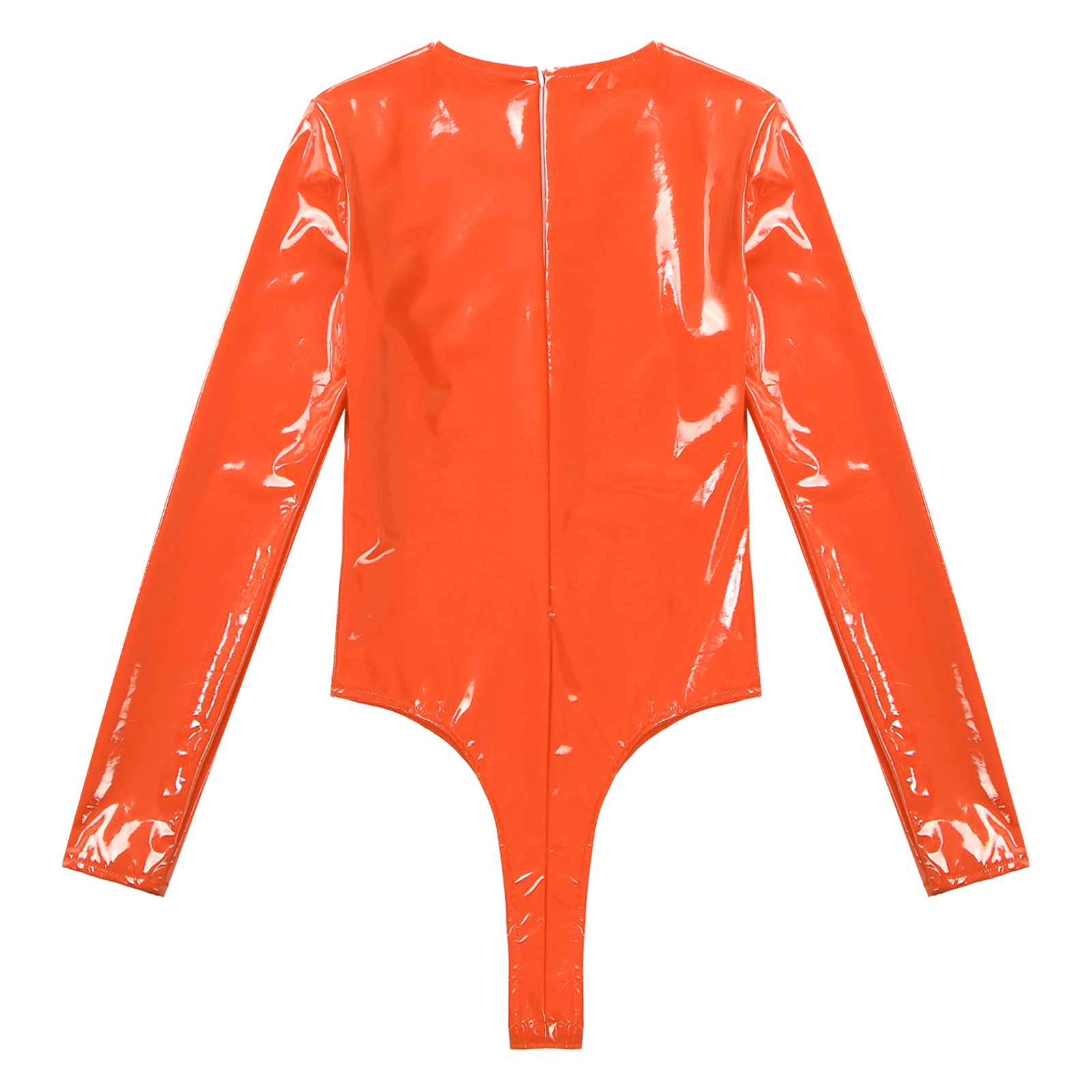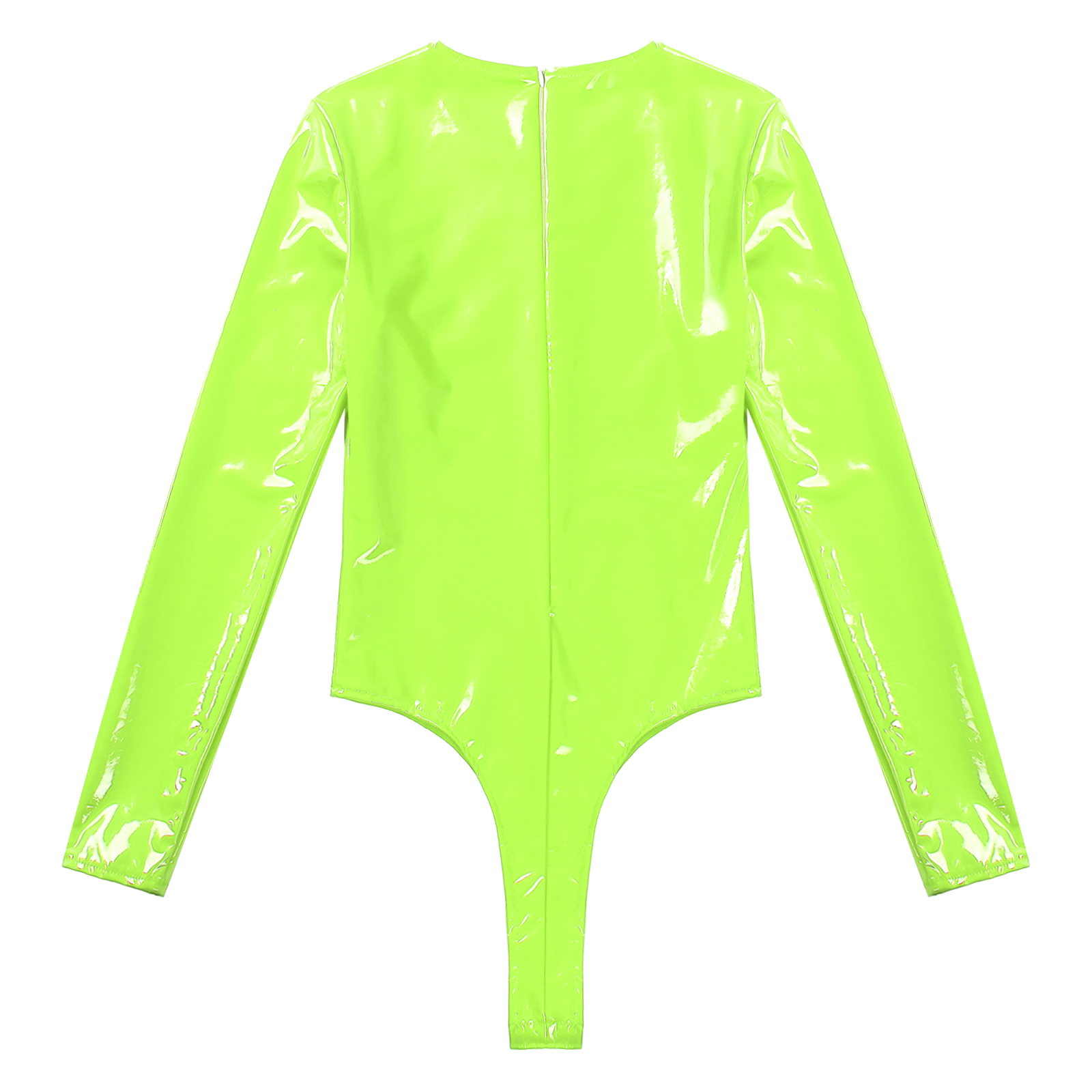 Женский боди из лакированной кожи с длинными рукавами, трико с высоким вырезом и молнией сзади.