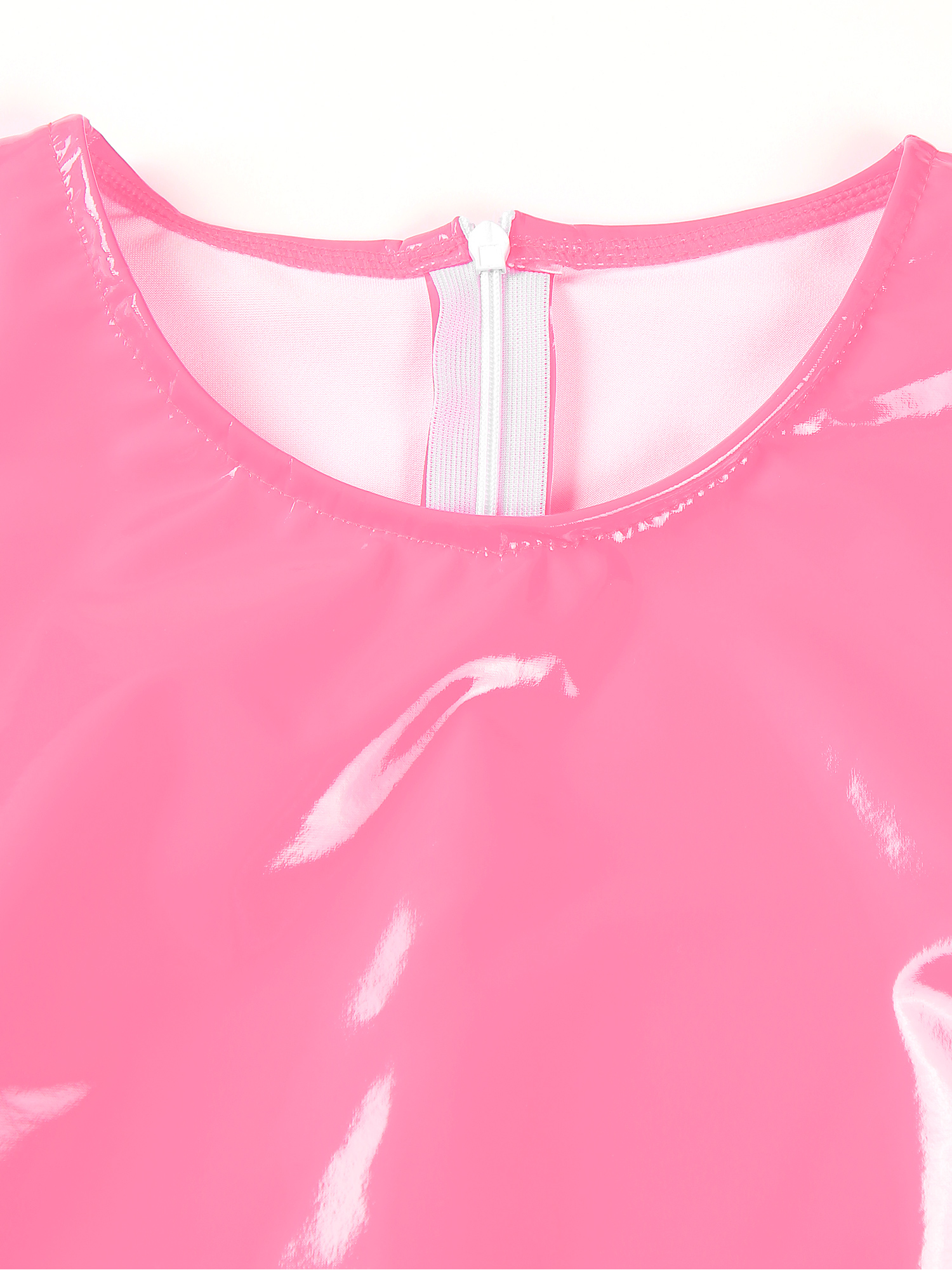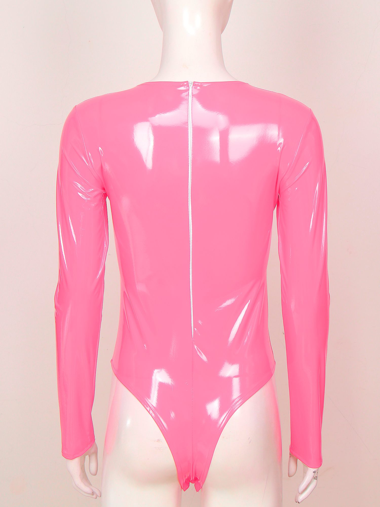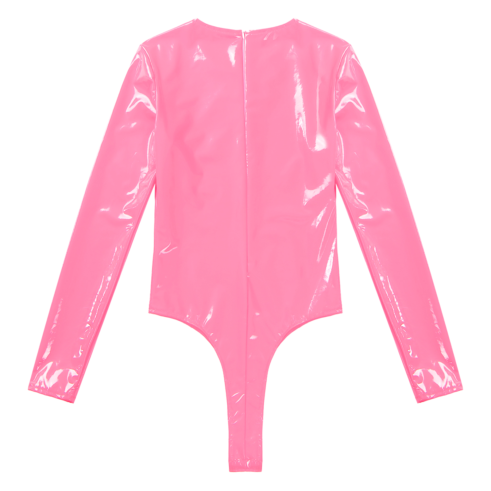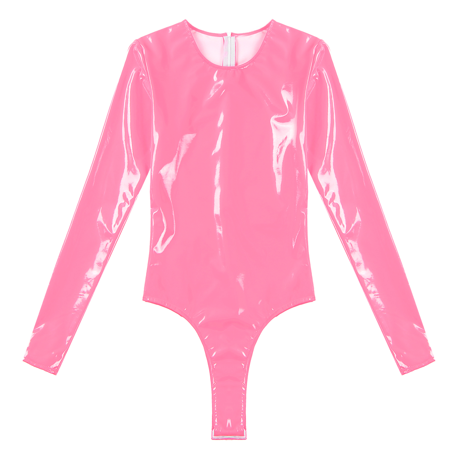 Женский боди из лакированной кожи с длинными рукавами, трико с высоким вырезом и молнией сзади.