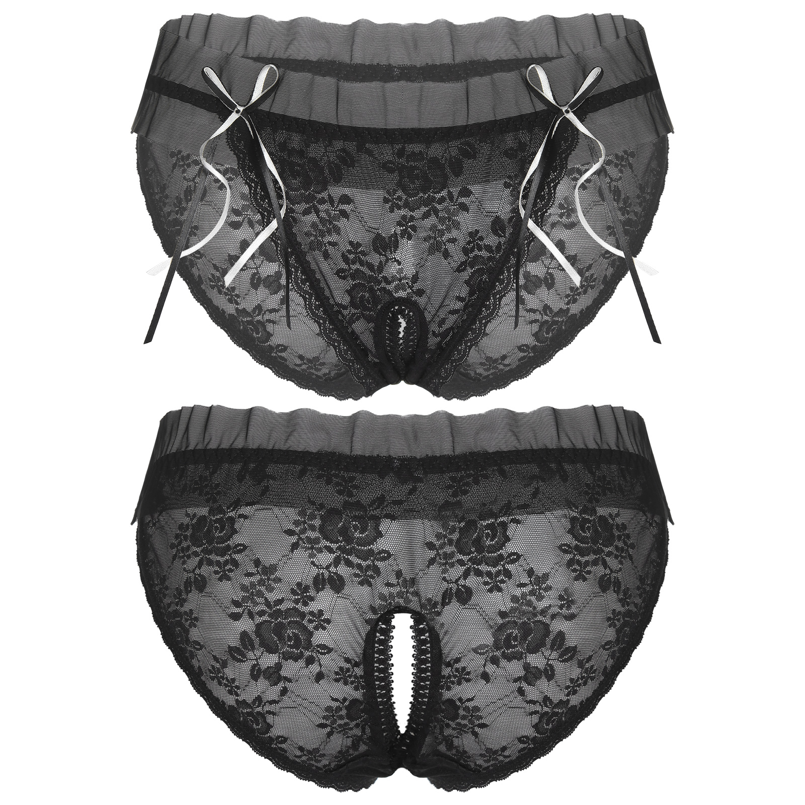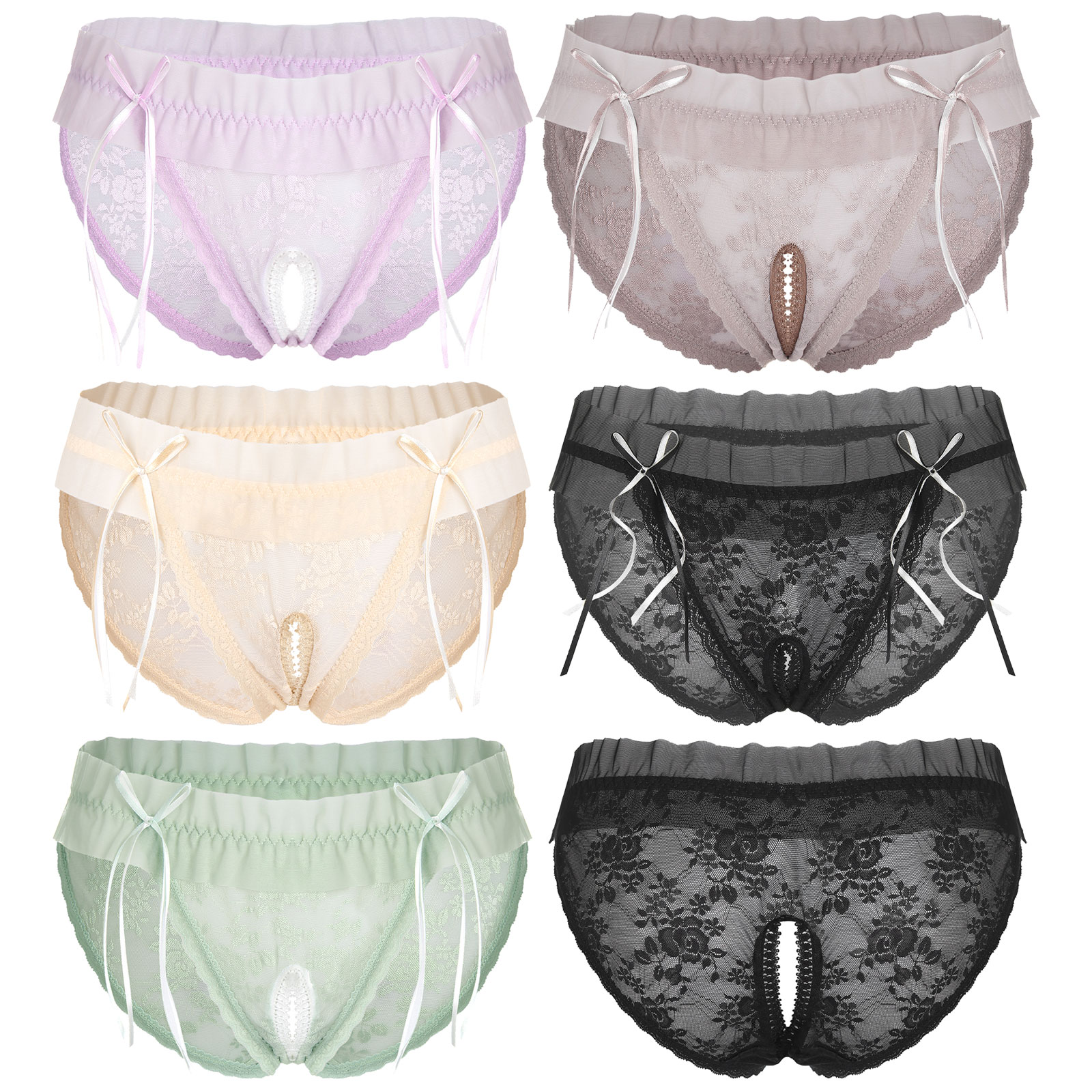 Женские цветочные кружевные трусы с вырезами, низкая посадка, трусики с бантиками, полупрозрачное нижнее белье.