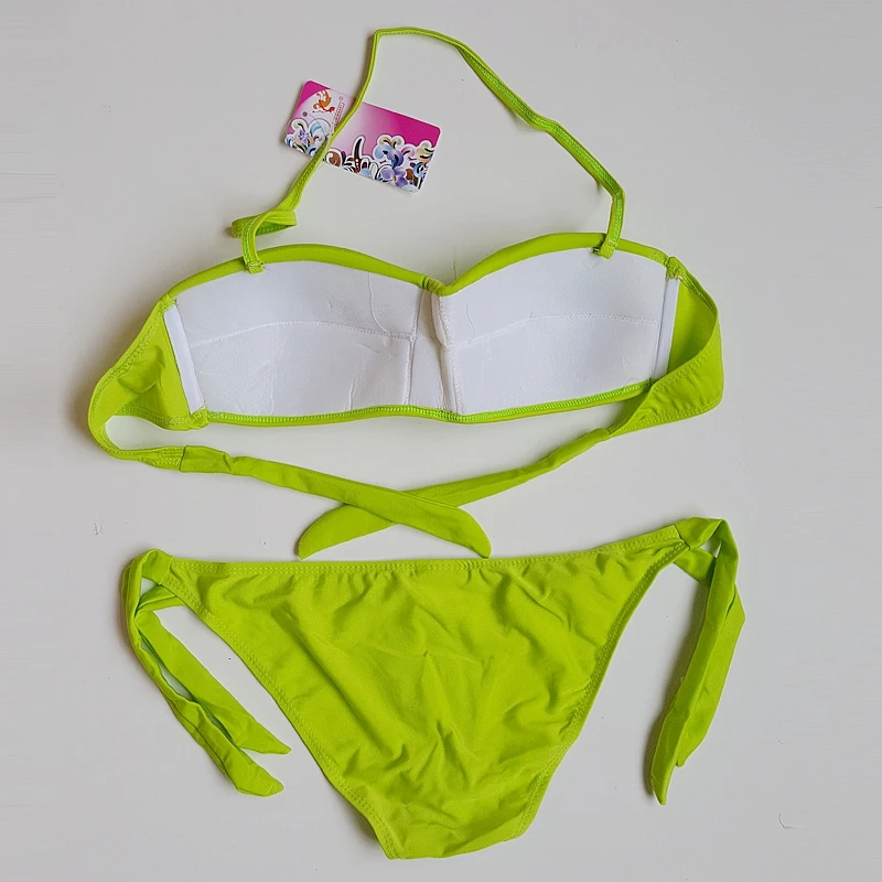 Номер товара: DM060 1. Основная ткань: 82% нейлон, 18% лайкра, 200-220GSM 2. Скрученный топ-бандо 3. Бандаж 4. Съемный ремешок на шее 5. Пуш-ап подкладка 6. Перед полностью на подкладке 7. Цвета: белый, черный, синий, желтый, оранжевый, ярко-розовый, ярко-зеленый 8. Размер: S.M.L.XL 9. Упаковка: полиэтиленовый пакет/1 комплект