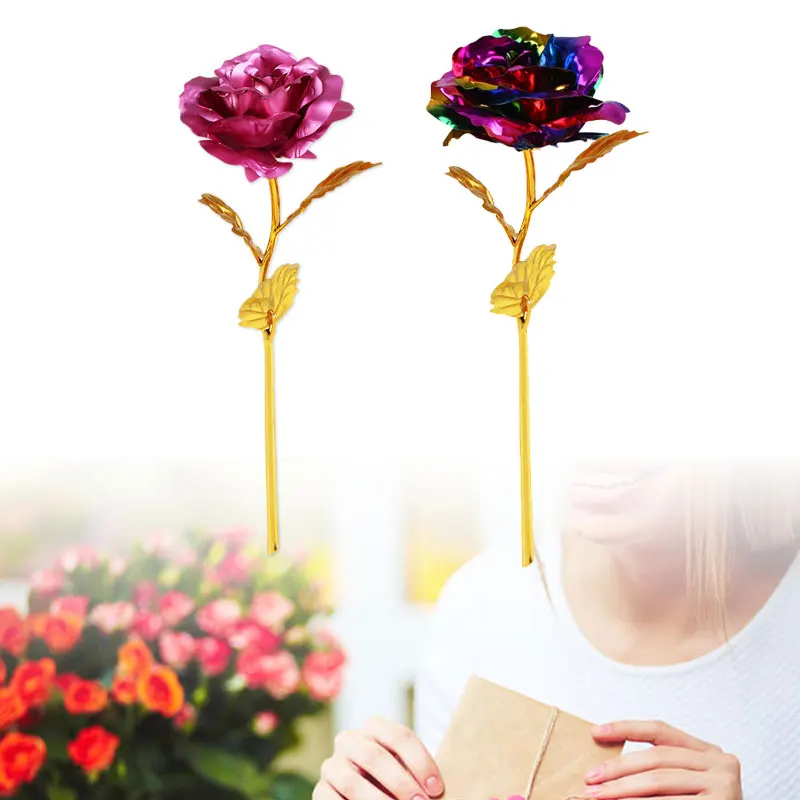 Романтичный цветок розы 24K покрытый фольгой Золотой Розовый Золотой Радужный