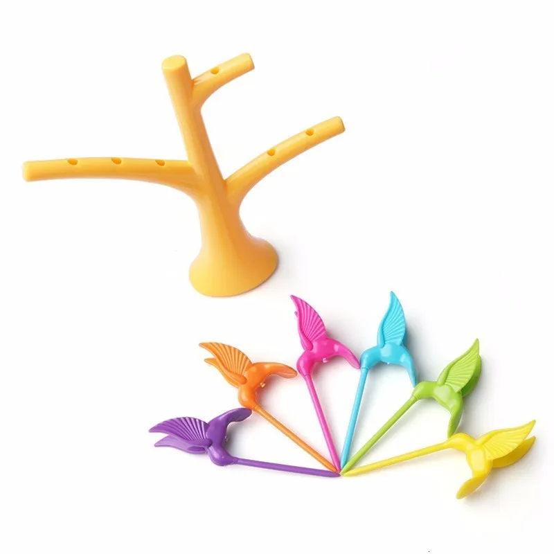 6 шт. + 1 Подставка форма дерева Птицы вилка для фруктов пластиковая овощная вилка фруктовая закуска десерт держатель для вилок вечерние Декор для дома