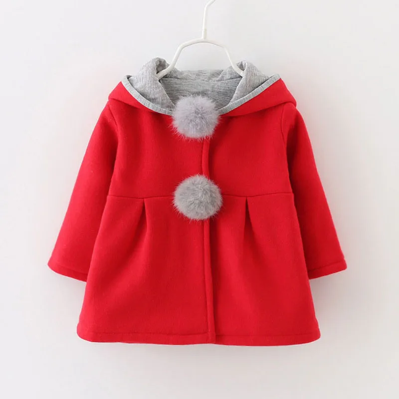 От 1 до 5 лет Одежда для девочек осенне-зимняя теплая куртка, пальто шерстяное пальто с длинными рукавами и рисунком кролика Качественная детская одежда