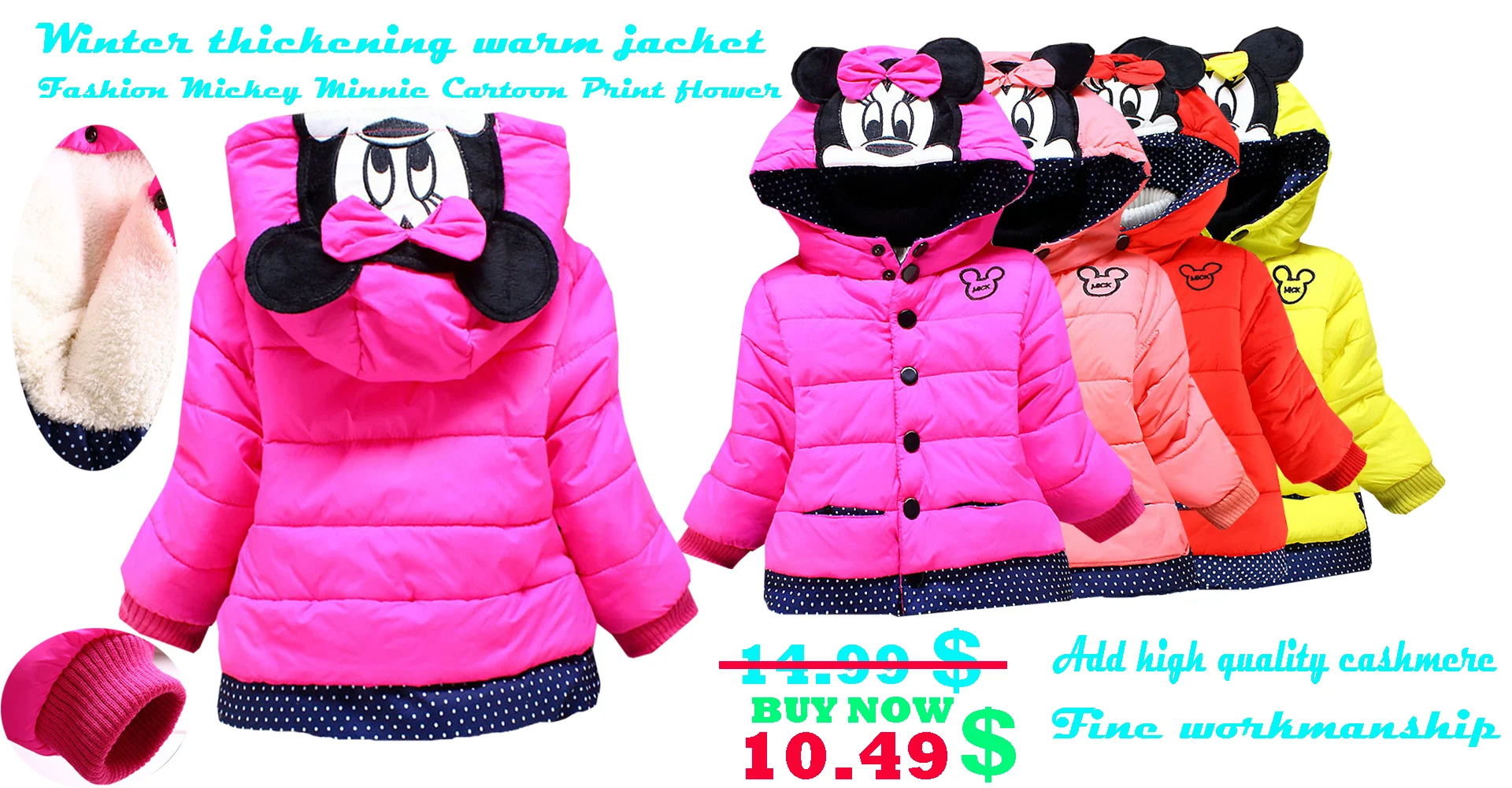 Комплект одежды для маленьких девочек осенне-зимнее пальто с капюшоном и длинными рукавами, футболка и штаны комплект одежды из 3 предметов с Микки и Минни, printing1-4 y Beibei