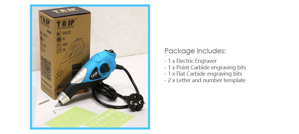 -1 x электрический гравер -1 x точечный карбидный Гравировальный Бит -1 x плоское твердосплавное гравировальное долото -Шаблон букв и цифр-2 шт.