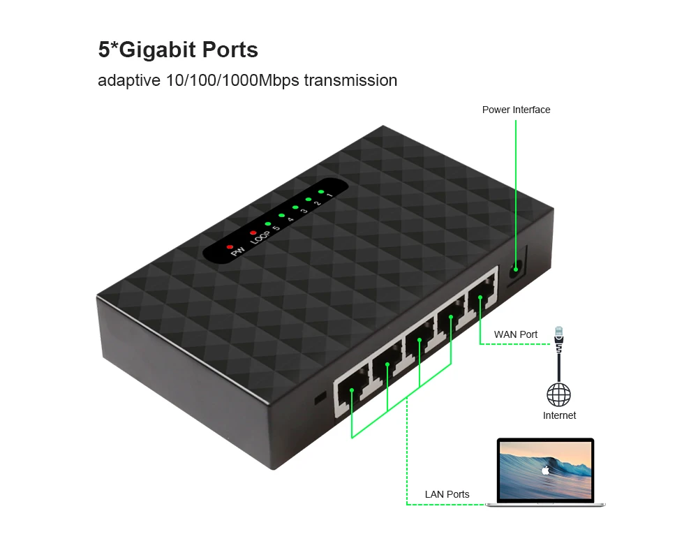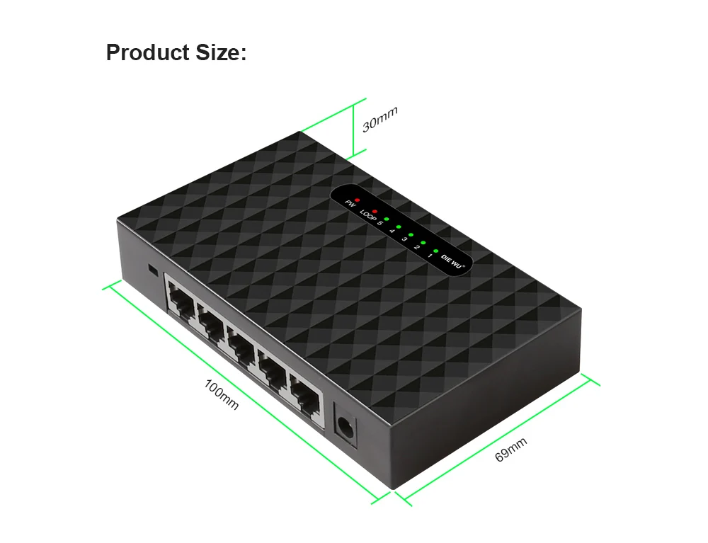 Введение: 5-Порты и разъёмы гигабитный настольный коммутатор SOHO. Это обеспечивает 5 10/100/1000 Мбит/с Автоматическое согласование портов, которые вы можете Используется для создания сети LAN или расширения сети uplink. По сравнению с переключателем 100 м, он усиливает Скорость передачи до 10 раз, устраняя узкое место каскадной полосы пропускания. Он поддерживает рабочий стол Установка и настенное крепление. Без конфигурации, он может быть воспроизведен после подключения. Со стабильным Подключение и простота в использовании, идеально подходит для сетей школьных общежитий, небольших офисов, Домашние офисы и видеонаблюдение. Особенности: • Порты автосогласования 5*10/100 / 1000 Мбит/с • Auto MDI / MDIX упрощает работу в сети и техническое обслуживание • Полная скорость передачи данных обеспечивает плавный опыт работы в сети • Управление потоком для полного дуплекса и обратного давления для полудуплекса позволяет избежать падения рамы, так как порт заблокирован • Поддерживает механизм хранения и движения вперед и предоставляет таблицу mac-адресов 2K • Джамбо рамка 15K улучшает Скорость пересылки больших данных • Имеет зеленый и экологичный материал ABS, улучшая термостойкость и теплоотдачу • Позволяет получить доступ к ip-камере и обеспечивает быстрое и четкое изображение • Настольный и настенный монтаж упрощает установку