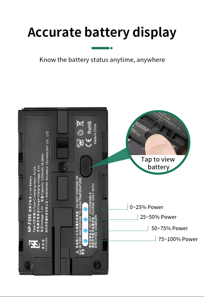 Входная мощность: Li-battery NP-F550/F750/F960 series,12V/2A,DC005 общий интерфейс (В комплекте)
