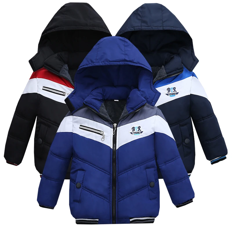 Детская одежда зимнее хлопковое пальто для мальчиков теплая Вельветовая верхняя одежда с капюшоном и аппликацией в полоску качественная одежда для малышей от 2 до 4 лет