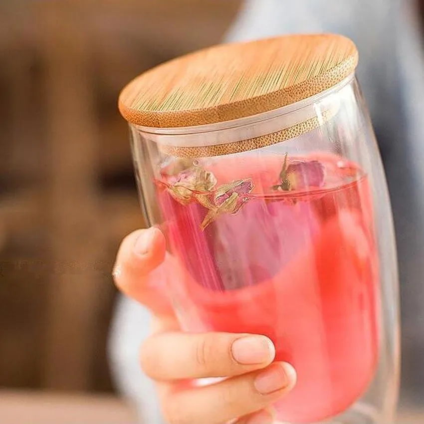 1 шт. термостойкие стеклянные двухслойные кофейные чашки, чайные кружки для вина с бамбуковой крышкой, фруктовый сок, водка, виски