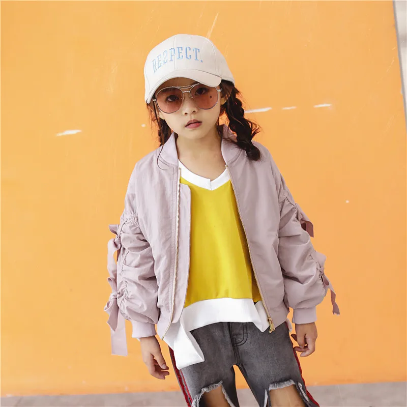 Новинка 2017 года; осенняя куртка для девочек; куртка на молнии; пальто; однотонная кружевная куртка с длинными рукавами; Бесплатная доставкаUS $27,99 /Шт.