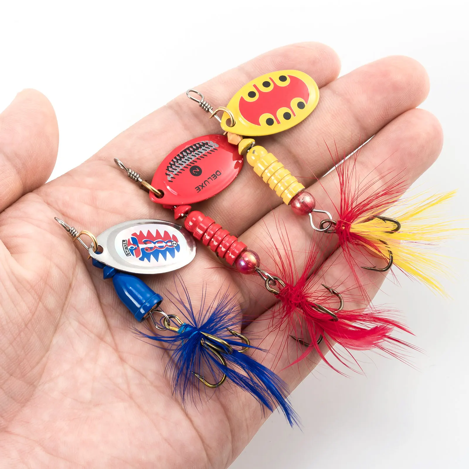 Премиум компоненты:Блесны изготовлены из вала из нержавеющей стали; Латунная шестерня; Пластиковая бусина; Высокоточные ЛЕЗВИЯ и роскошное Перо хвоста.