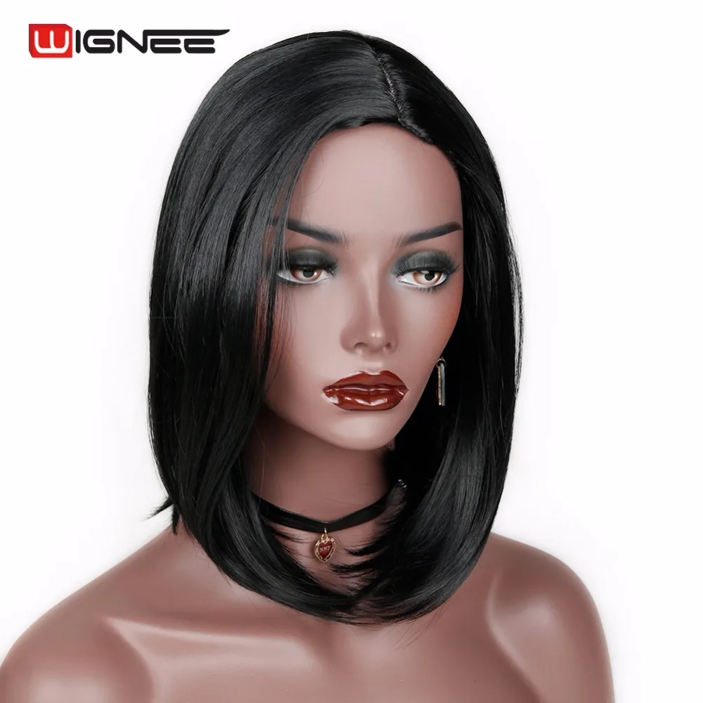 Wignee Ombre Синий цвет короткие прямые волосы синтетический боб парик для черных женщин Косплей волосы парик Серый