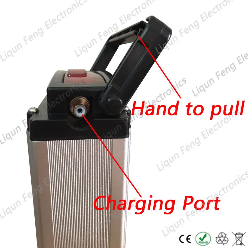 500W 36V 15AH Rear hanger Lithium ion Battery use 2600MAH cells 36V 15AH Electric Bicycle li-ion battery 20A BMS + 2A Charger.