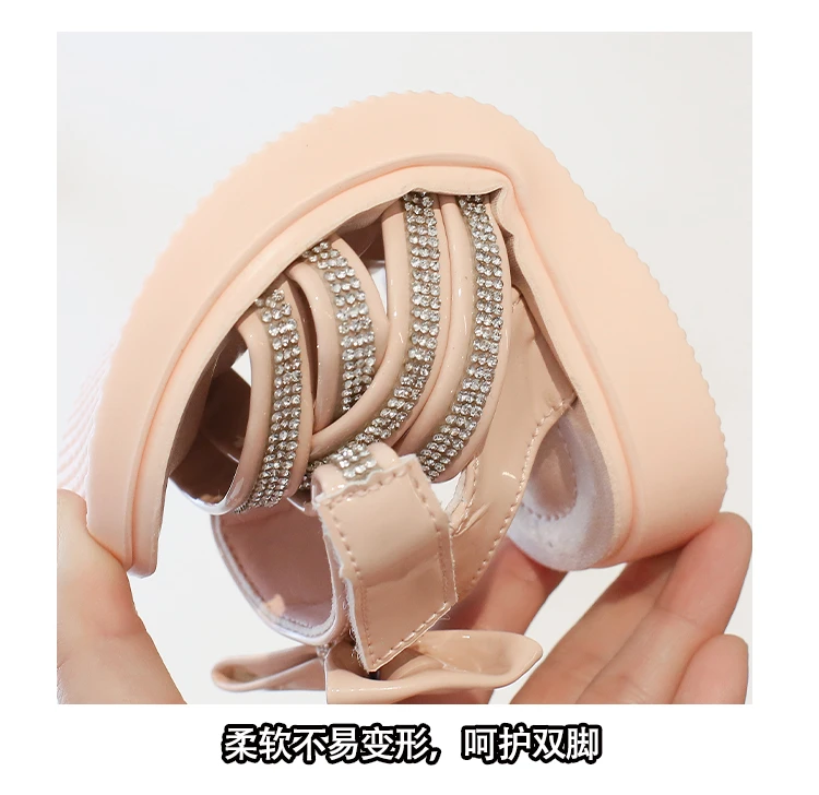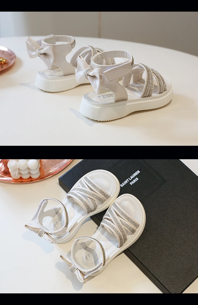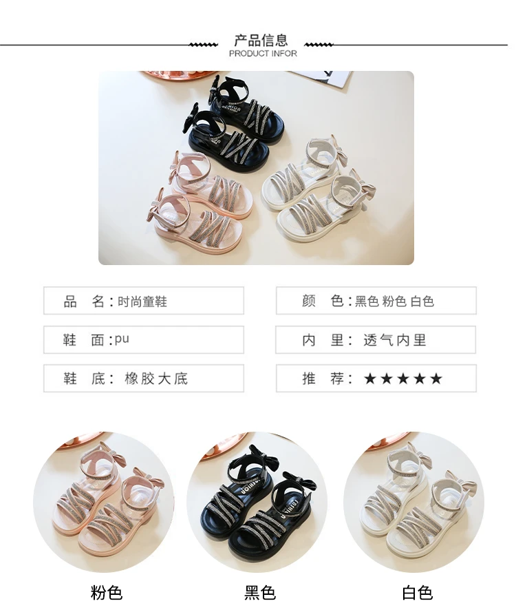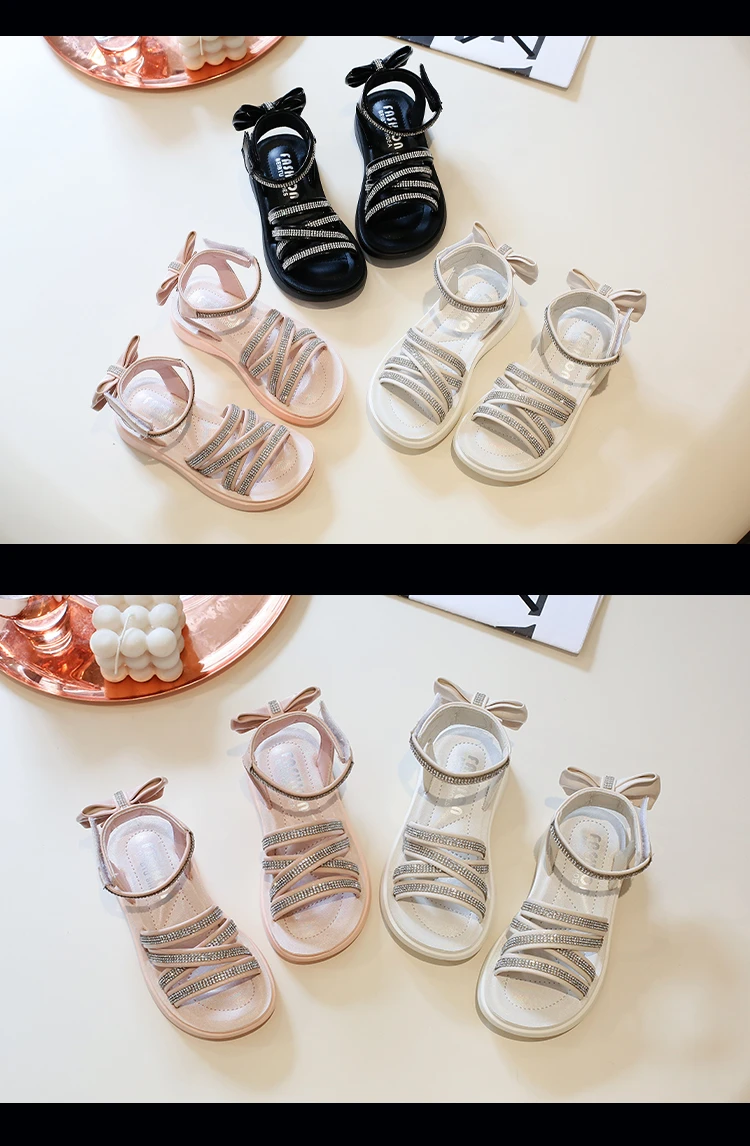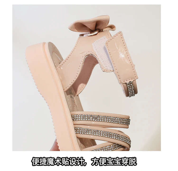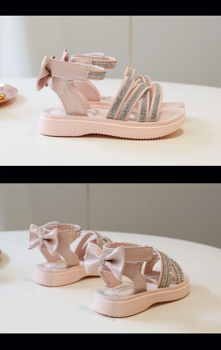 2022 сандалии со стразами для девочек, блестящая мода, мягкая подошва, Детская летняя обувь с открытым носком, черный, розовый, бежевый, размер 26-37