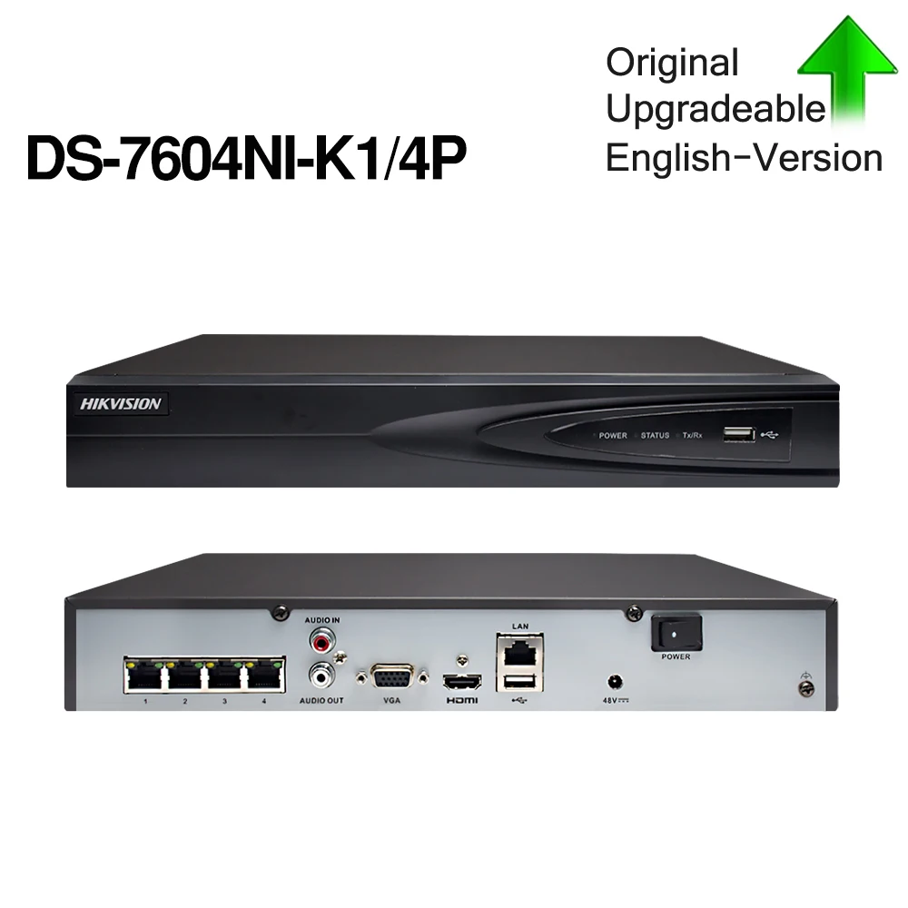 Hikvision Original DS-7604NI-K1/4P 4CH POE Embedded Plug Play 4K PoE NVR for IP Camera CCTV System Upgradable HDD Selectable.