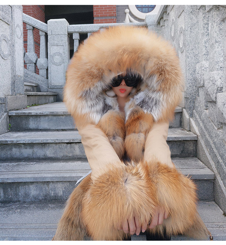 Воротник: настоящий большой Лисий мех/воротник из меха енота и застежка