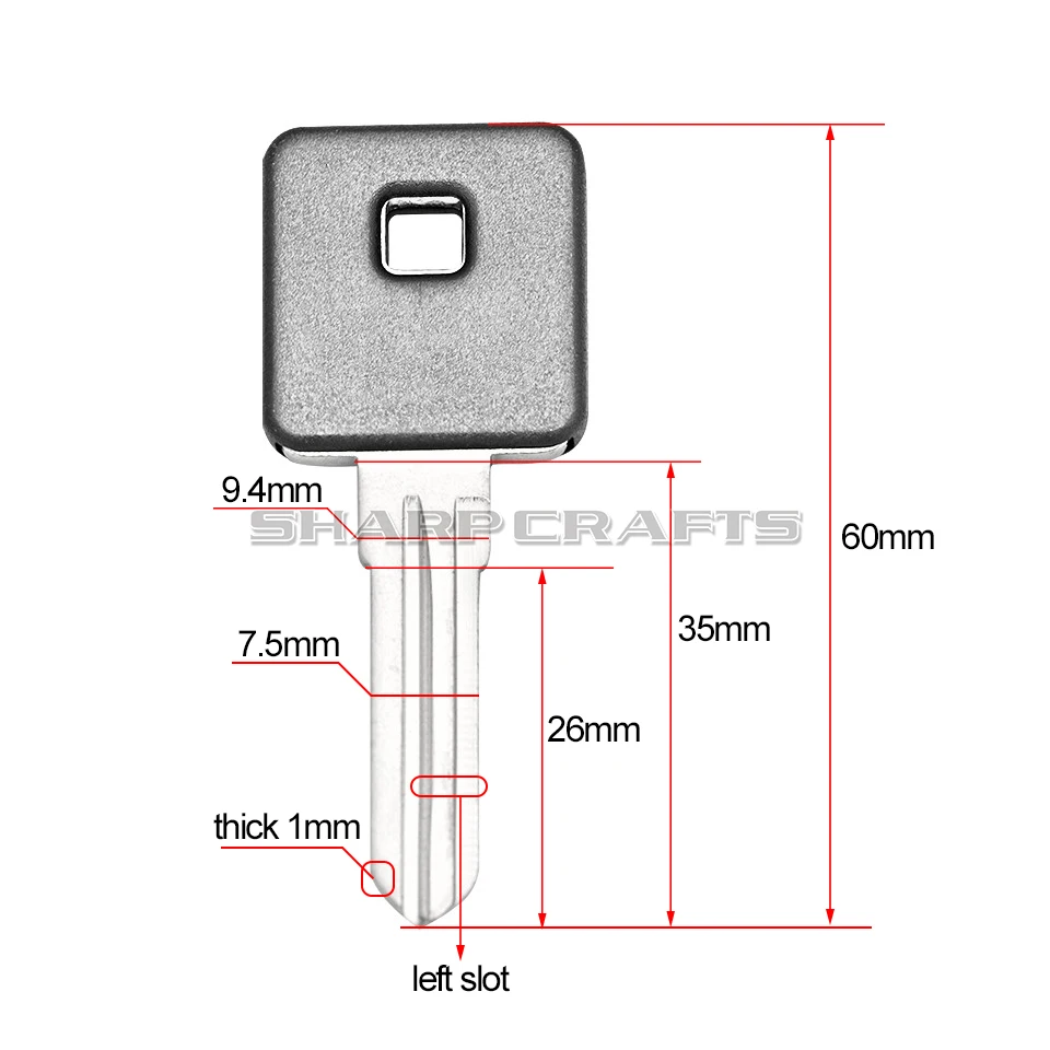 Это новая замена/Резервное копирование ваши ключи от мотоцикла. Метки в основные особенности обеих сторон пластиковой оболочки. Флаг встроен в оболочку. Если вы хотите, чтобы ваши ключи совпадали с цветом вашего велосипеда или просто хотели бы иметь вокруг дома или в автомобиле запасной ключ. Ключ не вырезан и должен быть доставлен к слесару или дилеру, который будет вырезан, чтобы соответствовать вашему мотоциклу.
