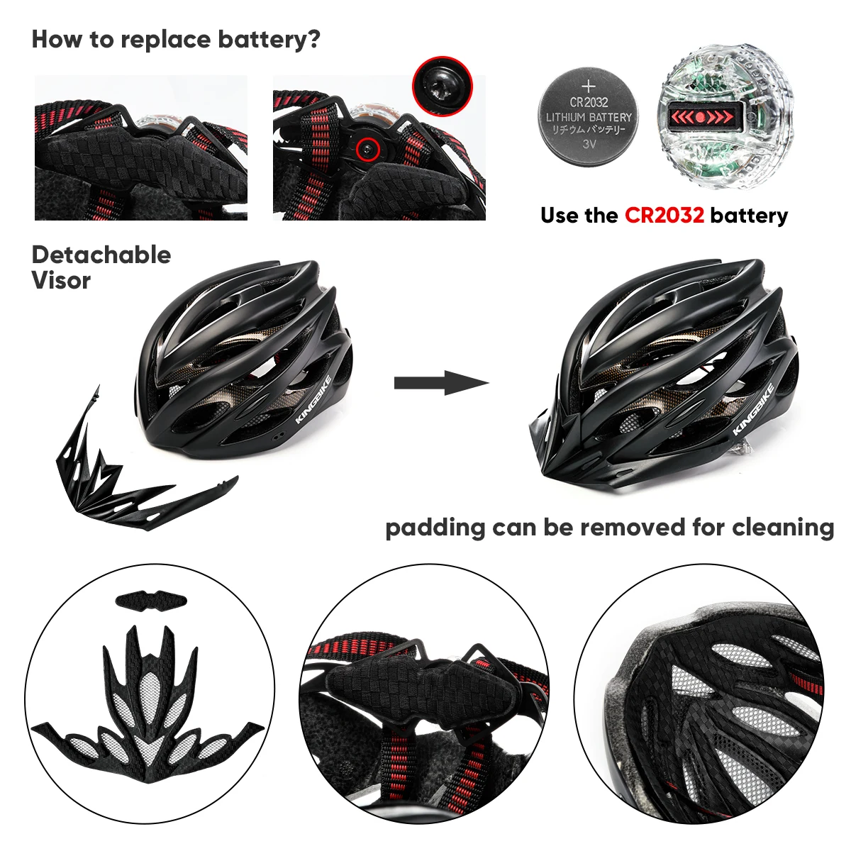 Примечание: этот шлем оснащен функцией заднего фонаря, но не включает аккумулятор (CR2032). Если вы хотите использовать функцию заднего фонаря, пожалуйста, купите аккумулятор в розничном магазине или супермаркете.
