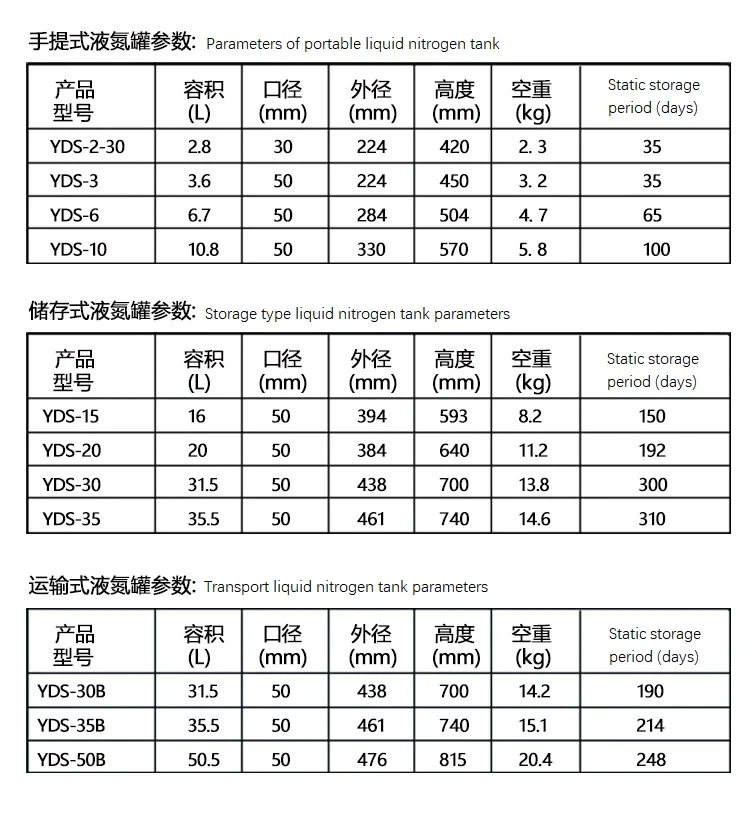 Резервуар для хранения жидкого азота: YDS-15, YDS-20, YDS-30, YDS-35