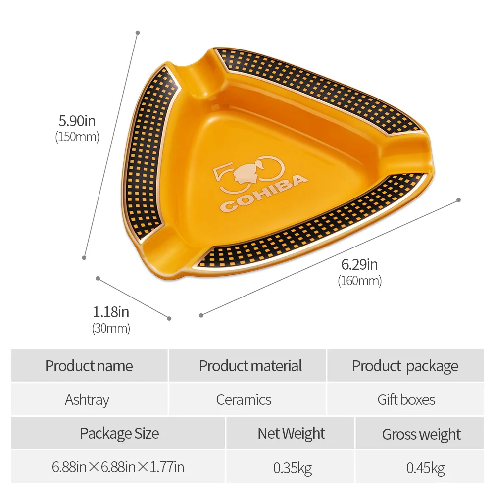 Cohiba пепельница для сигар, 3 слота, сигарета для табака, пепельница, Классический маленький керамический пепельница для сигар, держатель для домашнего офиса с коробкой