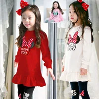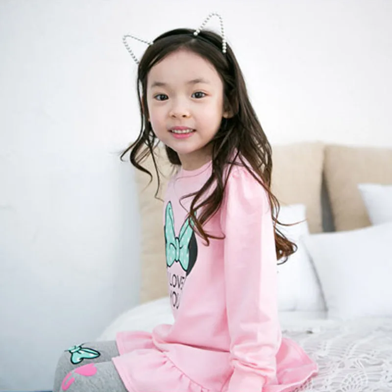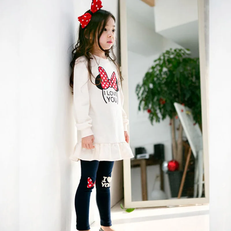 Одежда для девочек комплект из двух предметов, свитер с длинными рукавами и рисунком из мультфильма, футболка + леггинсы качественная хлопковая одежда для детей возрастом от 3 до 8 лет
